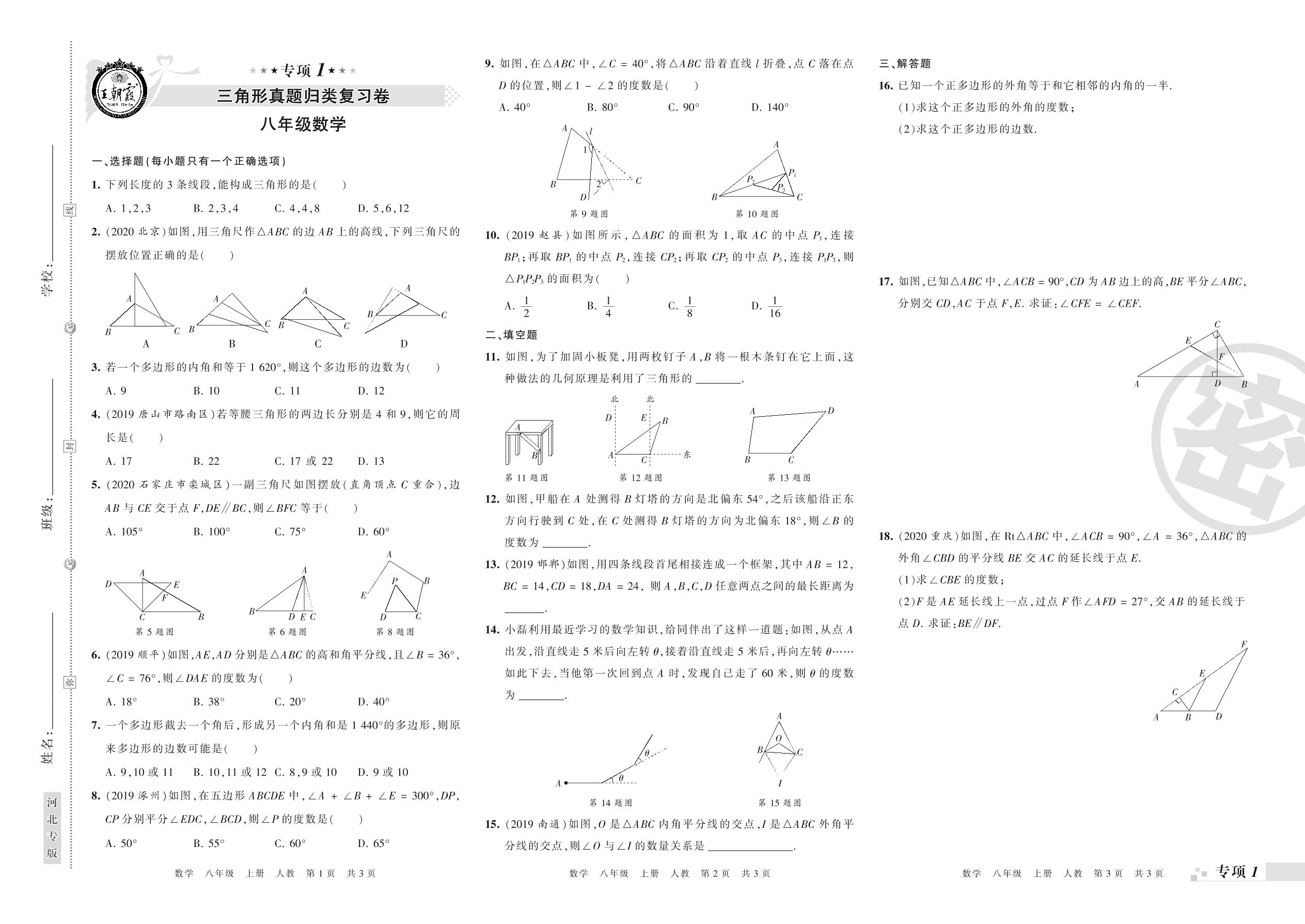 王朝霞期末专项卷——三角形、全等三角形真题归类复习八年级上册数学(人教版)【0】