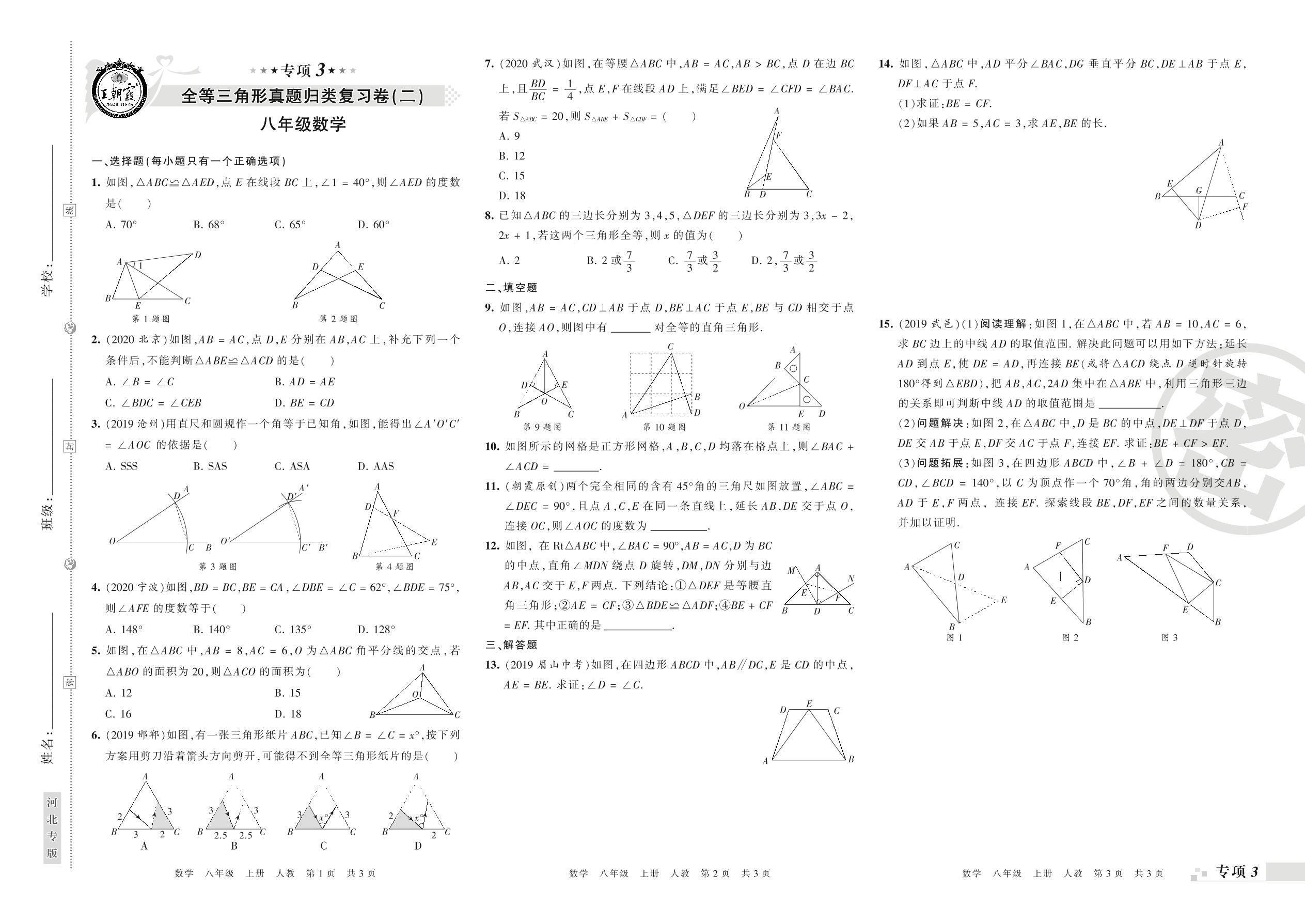 王朝霞期末专项卷——全等三角形、轴对称真题归类复习八年级上册数学(人教版)【0】