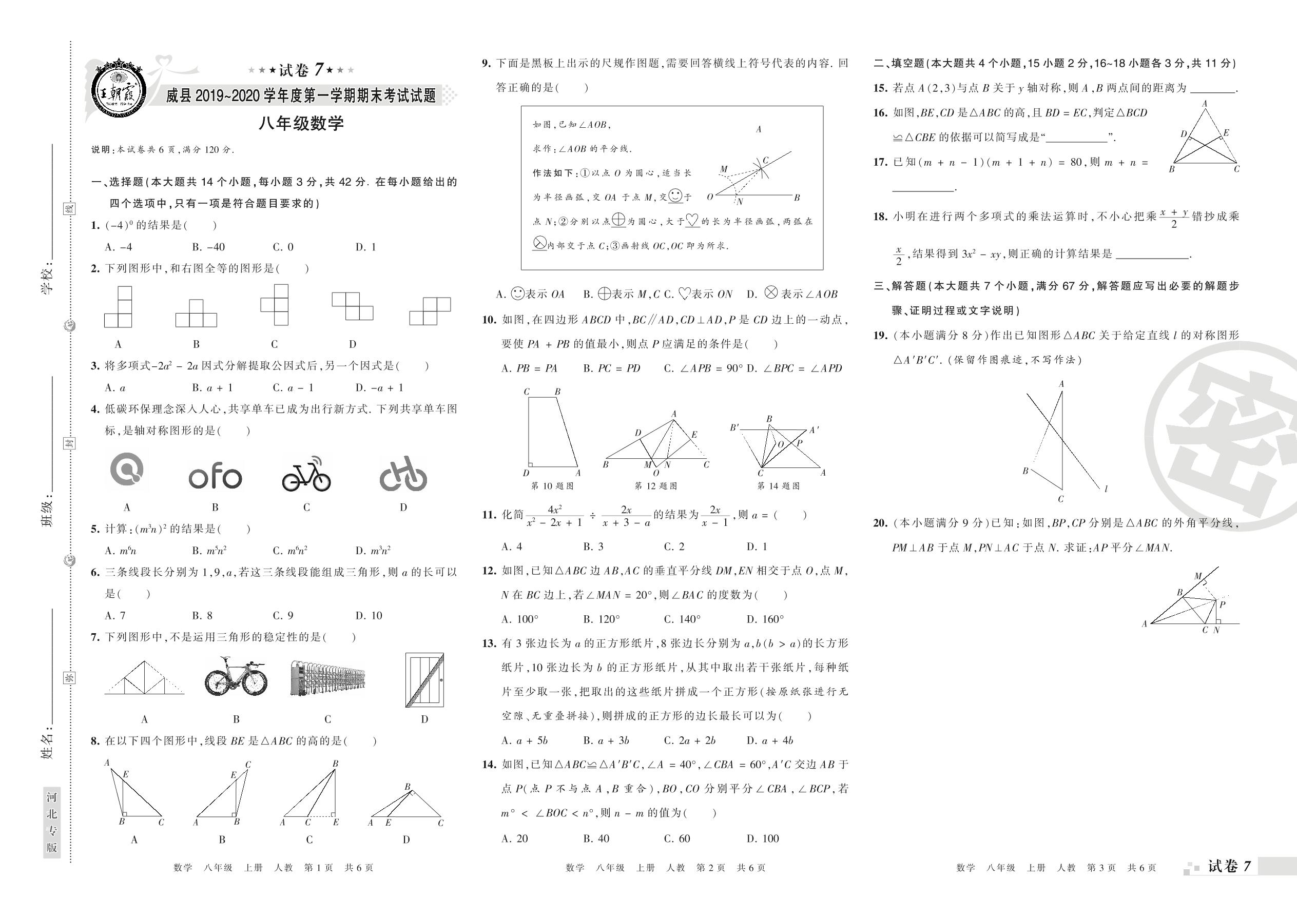2019-2020学年第一学期邢台市威县八年级数学试卷(人教版)【7】