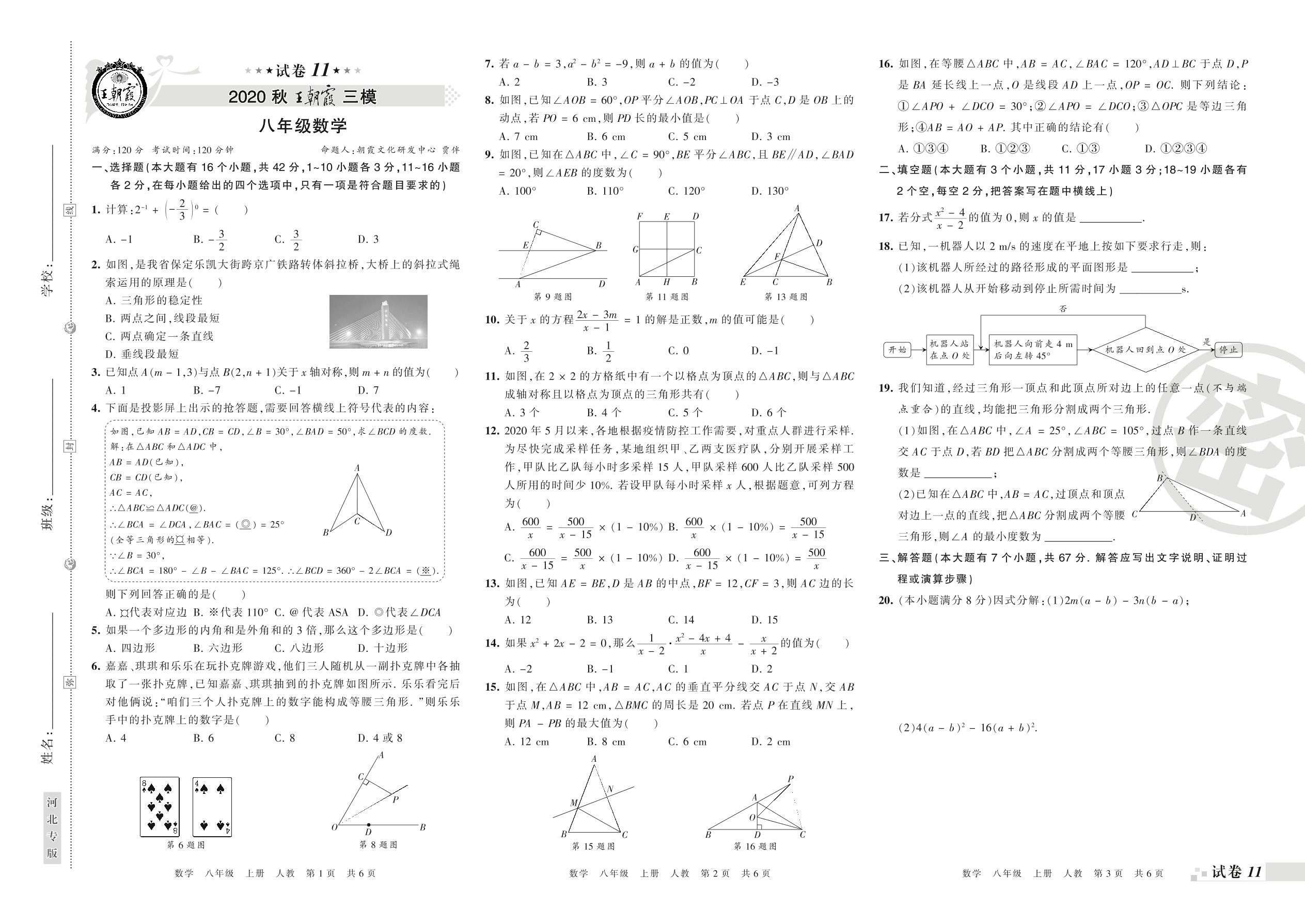 王朝霞期末模拟卷八年级上册数学(人教版)_R21080693101【11】