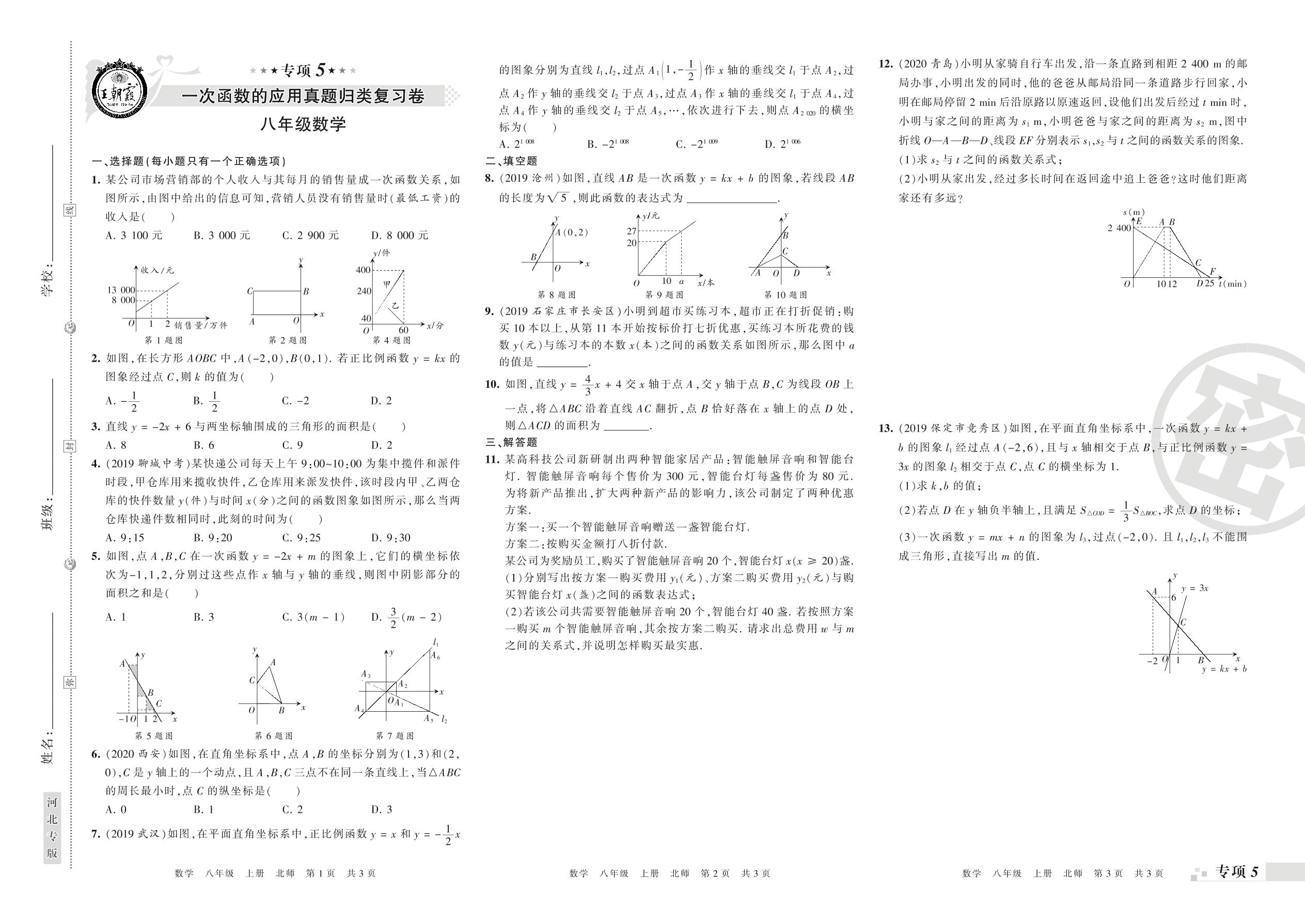 王朝霞期末专项卷——一次函数的应用、二元一次方程组真题归类复习八年级上册数学(北师版)【0】