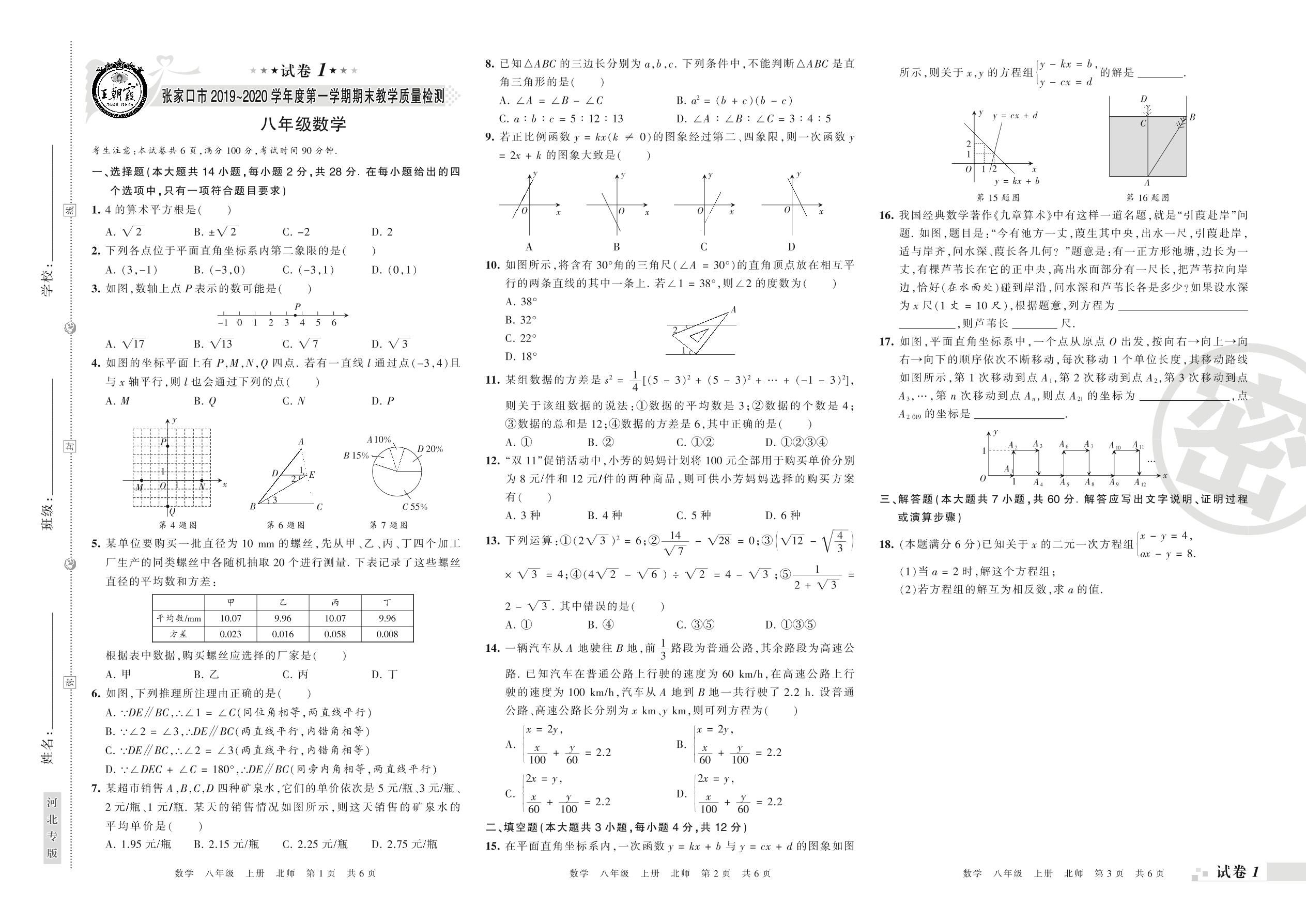 2019-2020学年第一学期张家口市八年级数学试卷(北师版)【1】