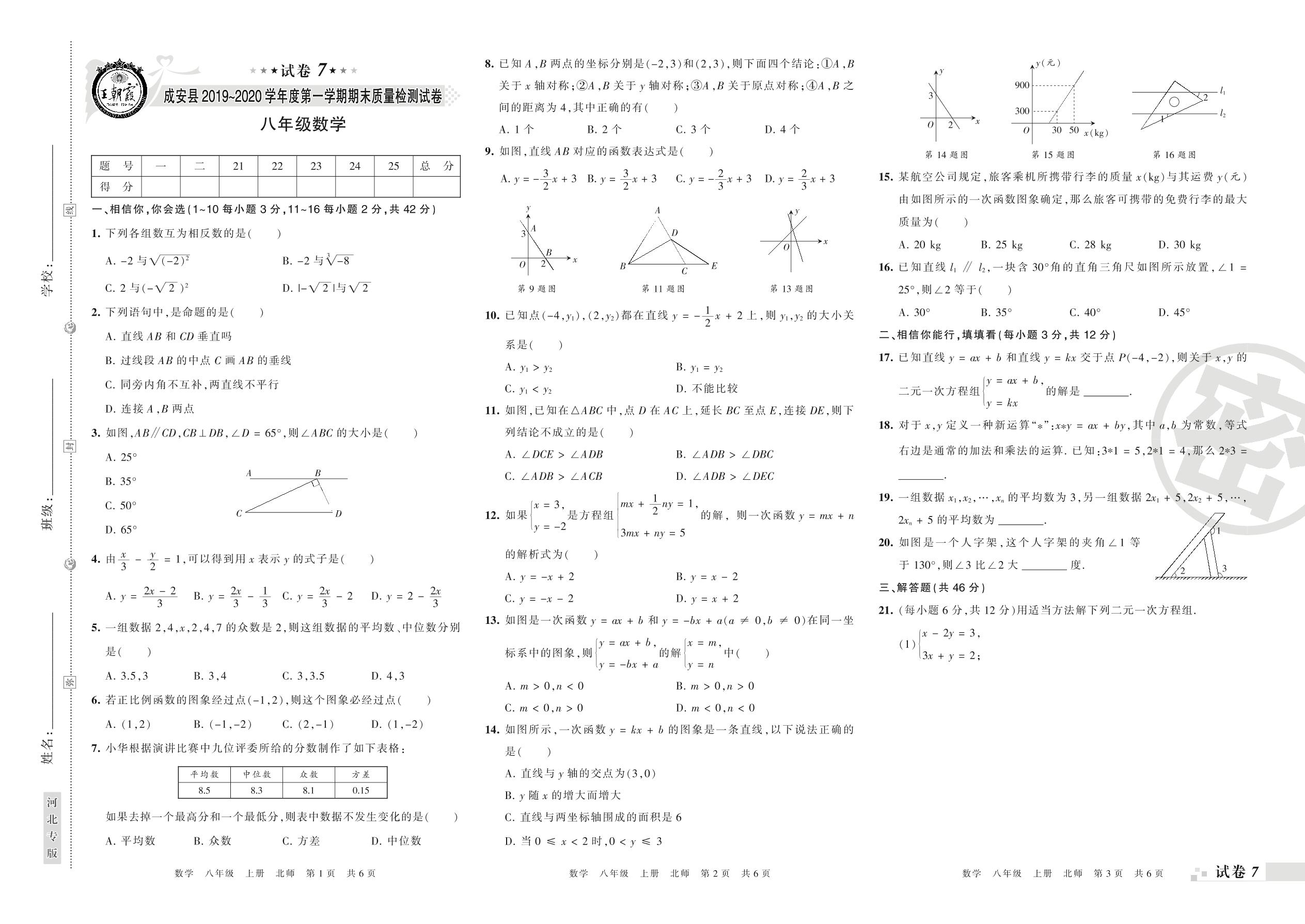2019-2020学年第一学期邯郸市成安县八年级数学试卷(北师版)【7】
