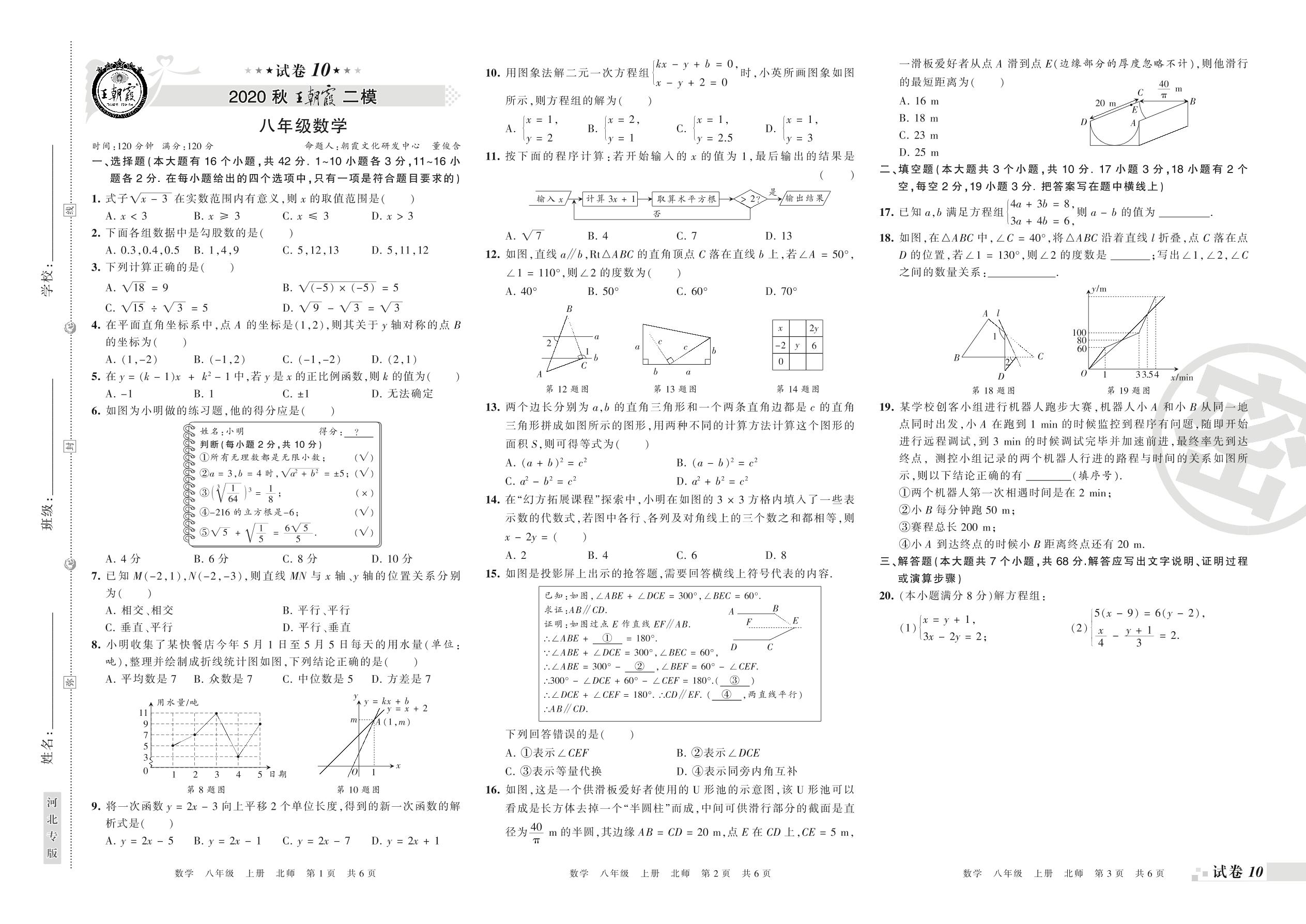 王朝霞期末模拟卷八年级上册数学(北师版)【10】
