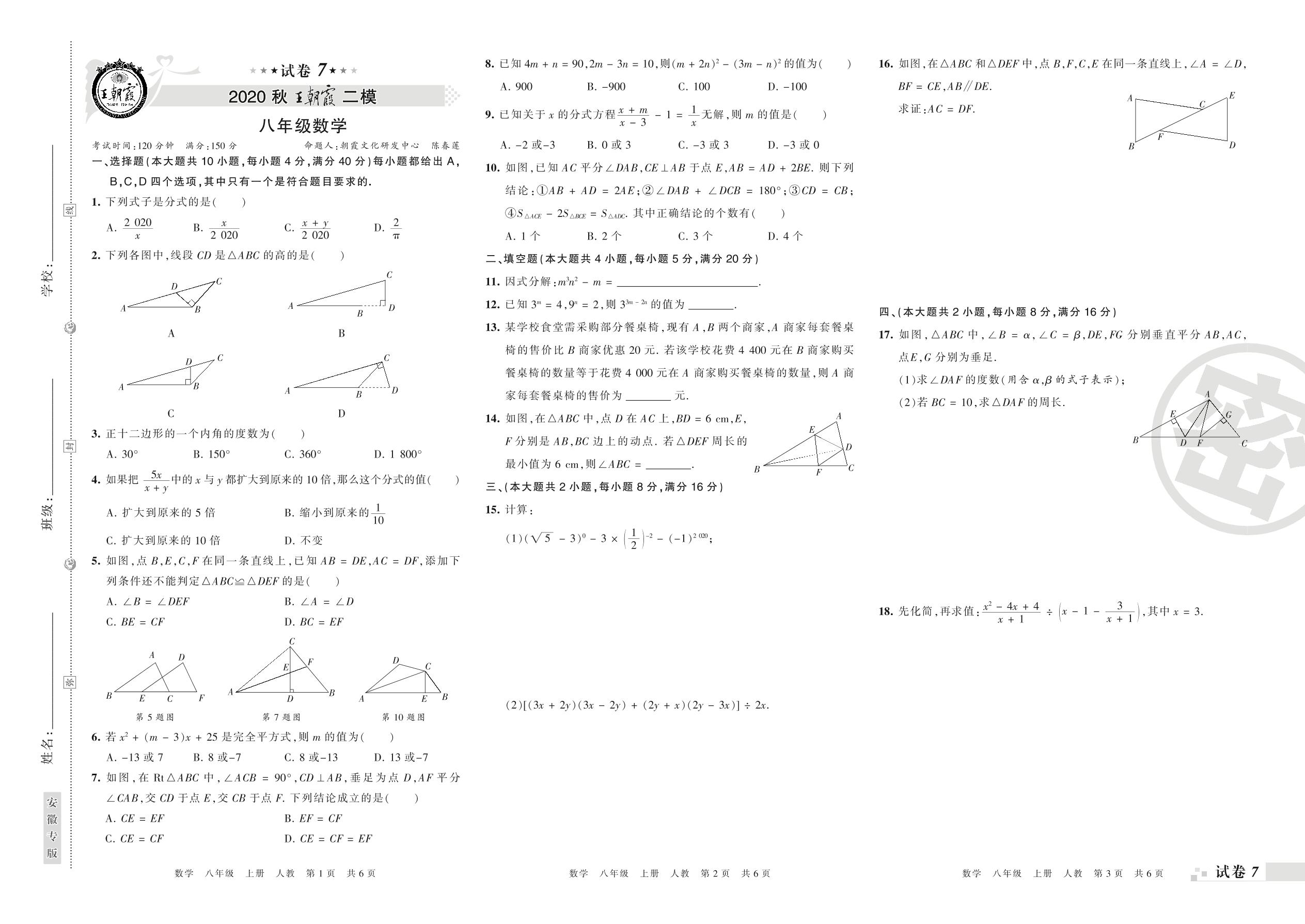 王朝霞期末模拟卷八年级上册数学(人教版)_R21080693633【7】