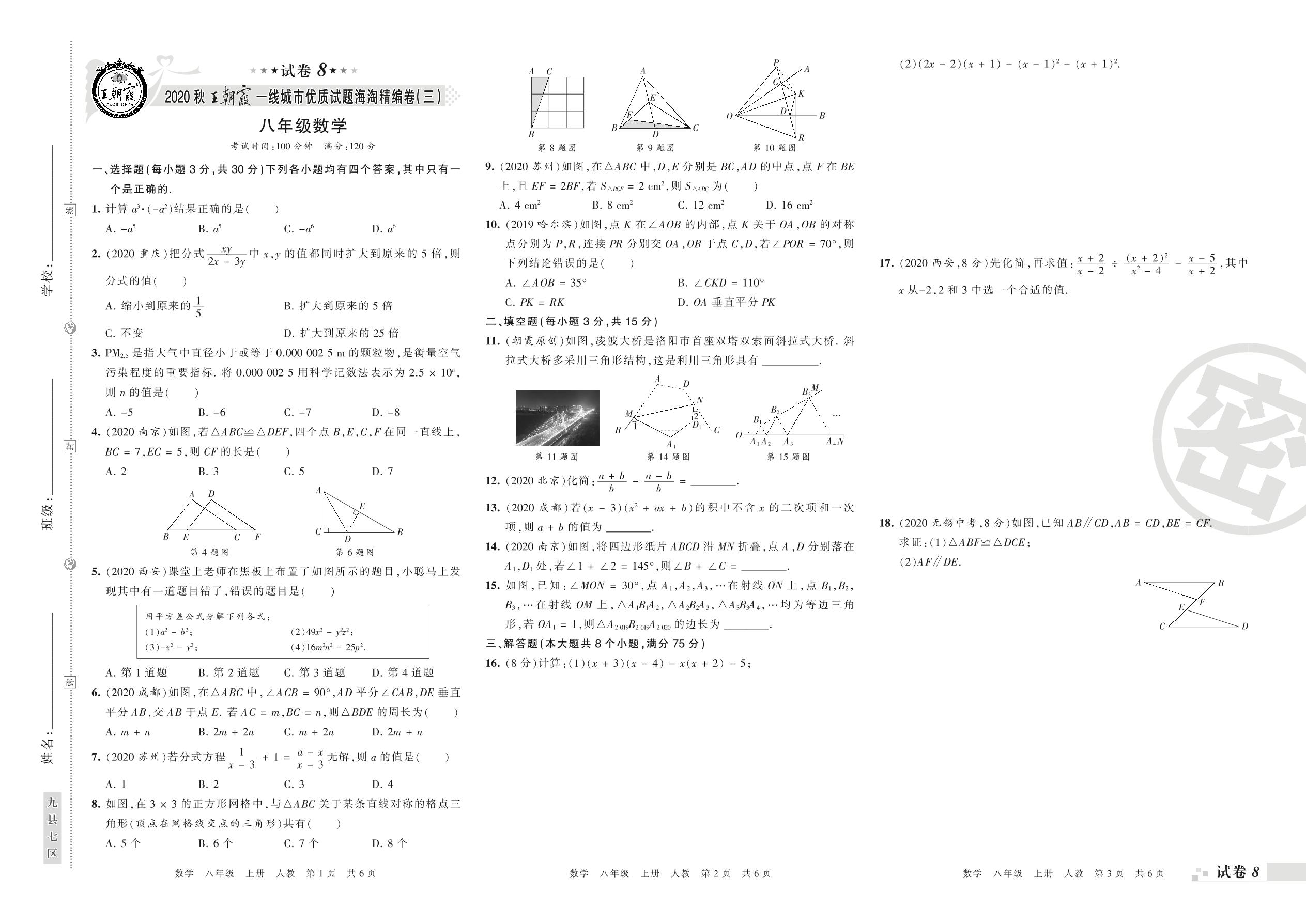 王朝霞海淘期末精编卷八年级上册数学(人教版)【8】