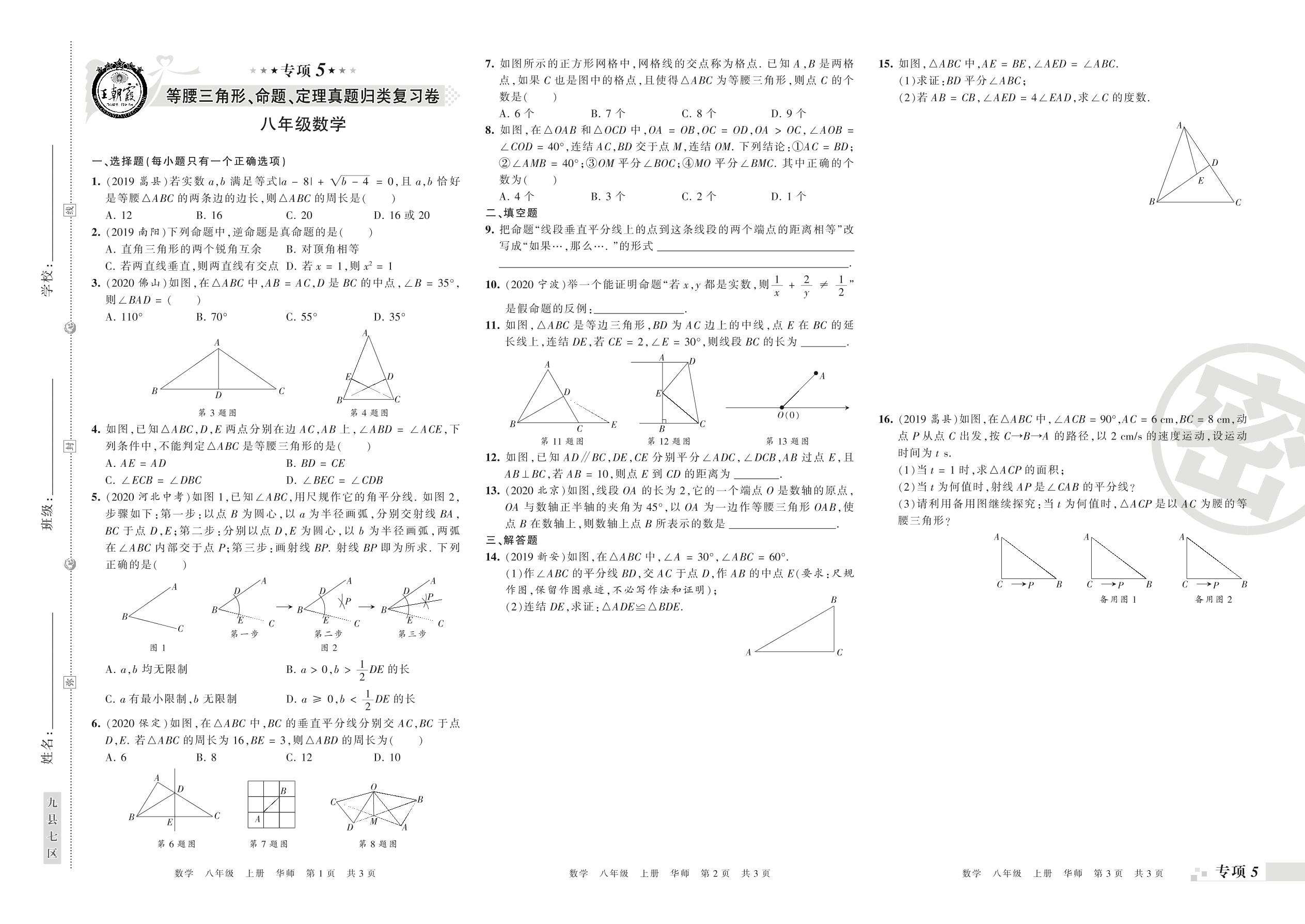 王朝霞期末专项卷——等腰三角形、命题、定理、勾股定理真题归类复习八年级上册数学(华师版)_R21080694144【0】