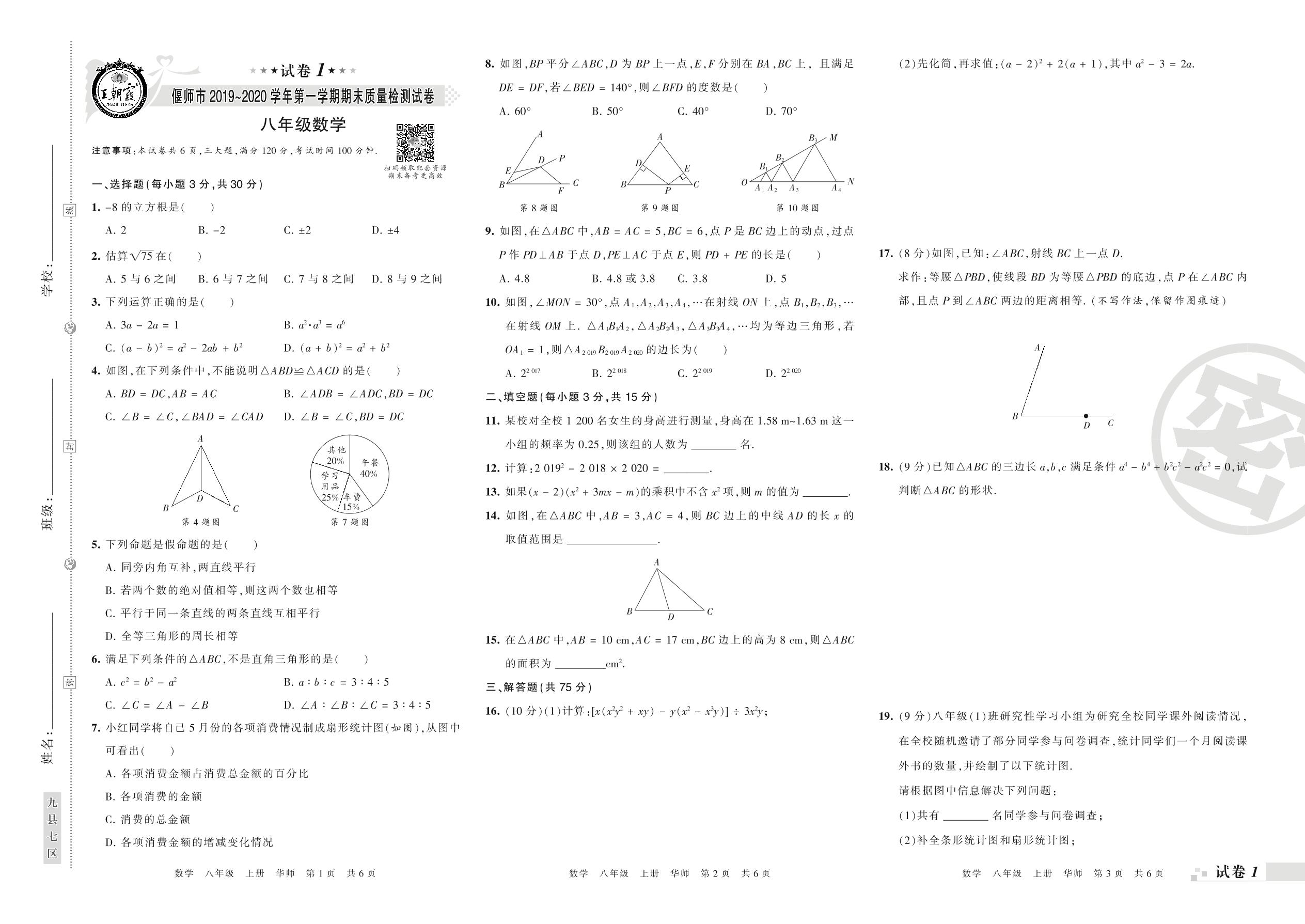 2019-2020学年第一学期偃师市八年级数学试卷(华师版)【1】