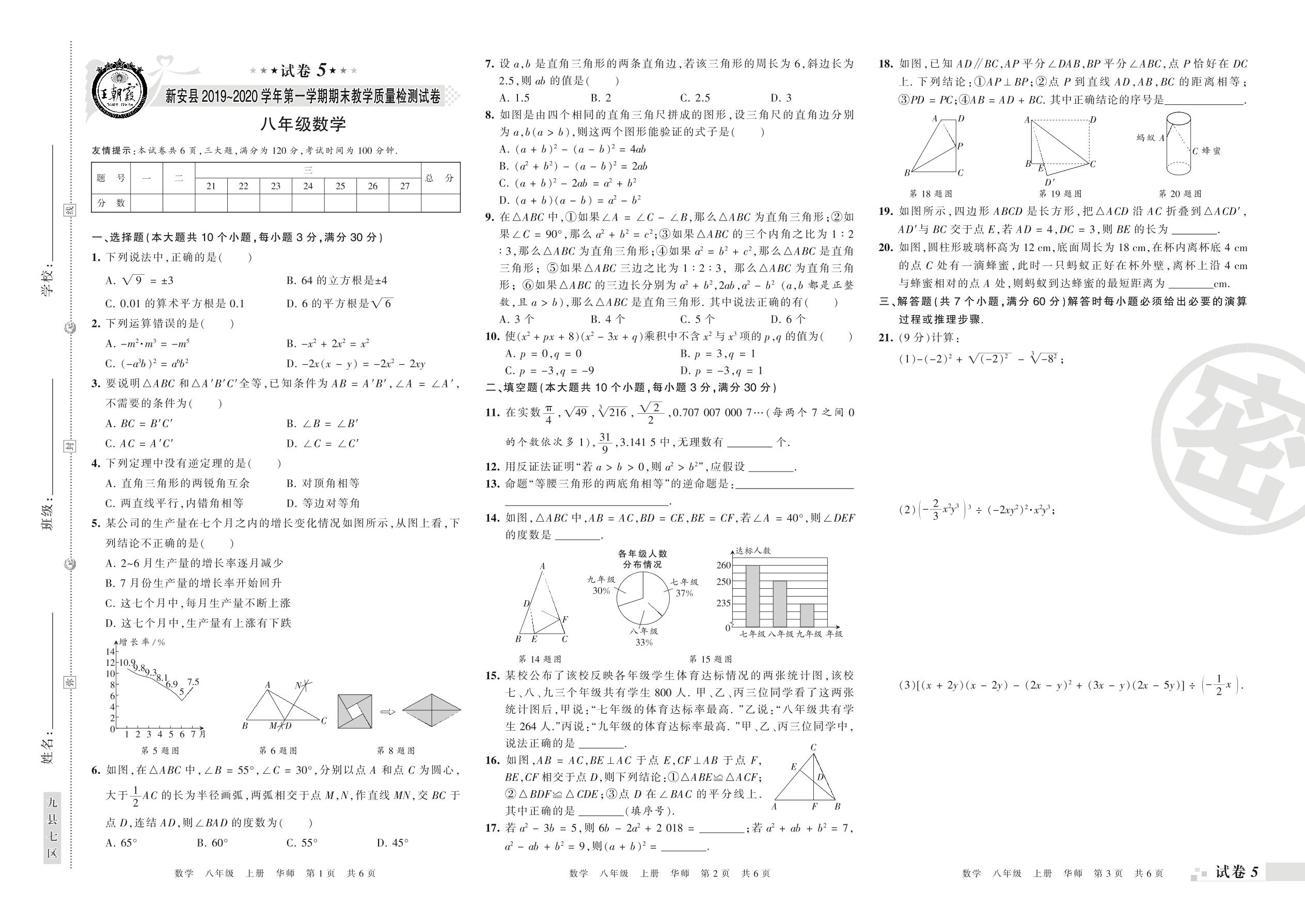 2019-2020学年第一学期洛阳市新安县八年级数学试卷(华师版)【5】