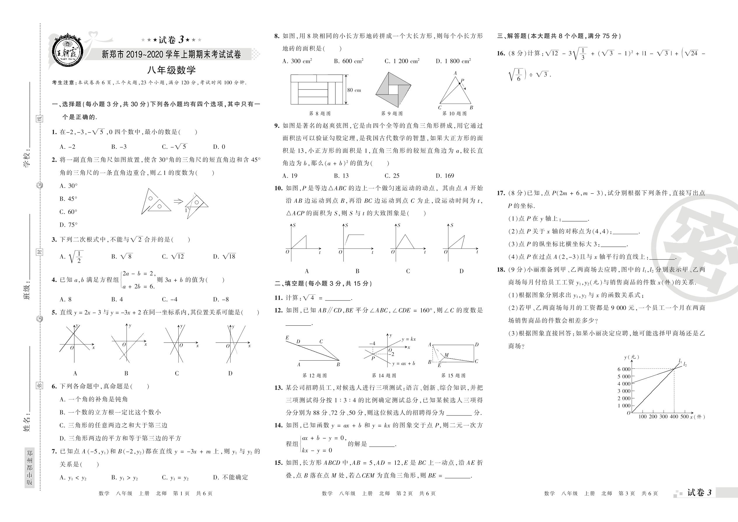 2019-2020学年第一学期新郑市八年级数学试卷(北师版)【3】