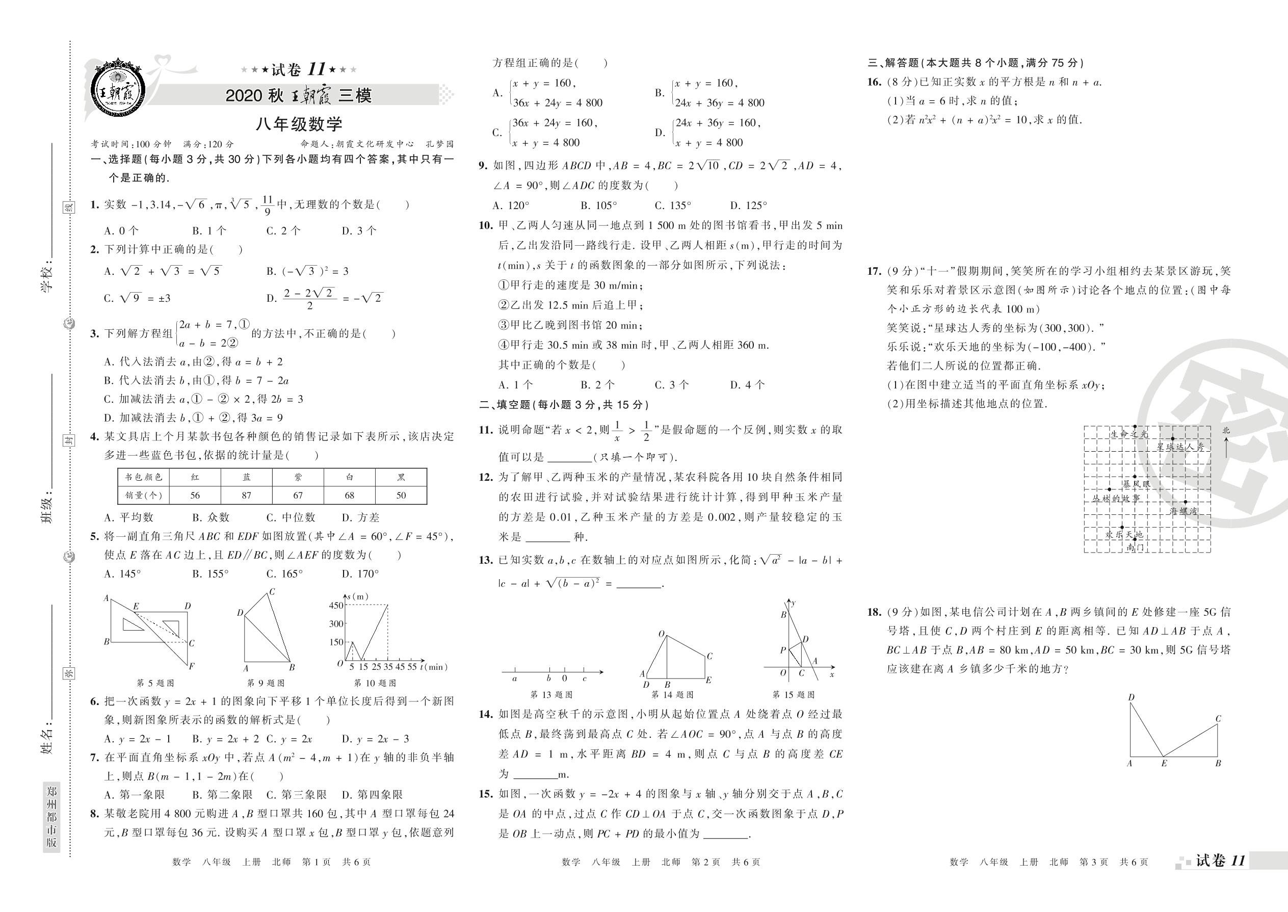 王朝霞期末模拟卷八年级上册数学(北师版)_R21080694430【11】