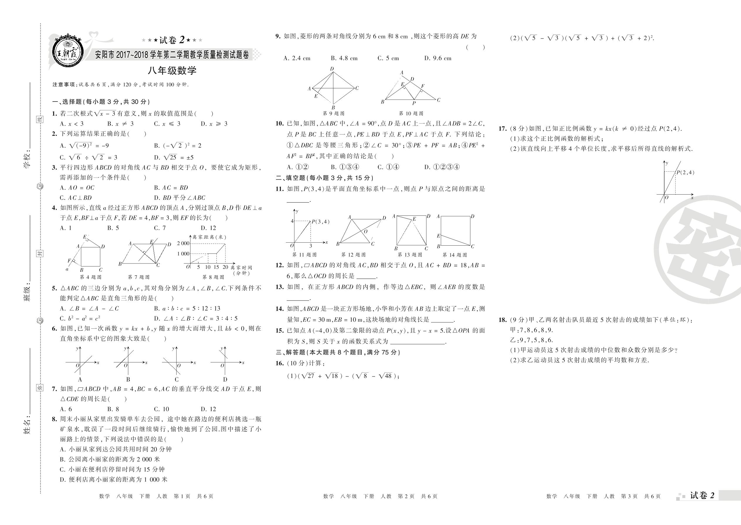 2017-2018学年第二学期安阳市八年级数学试卷(人教版)_R21080694517【2】
