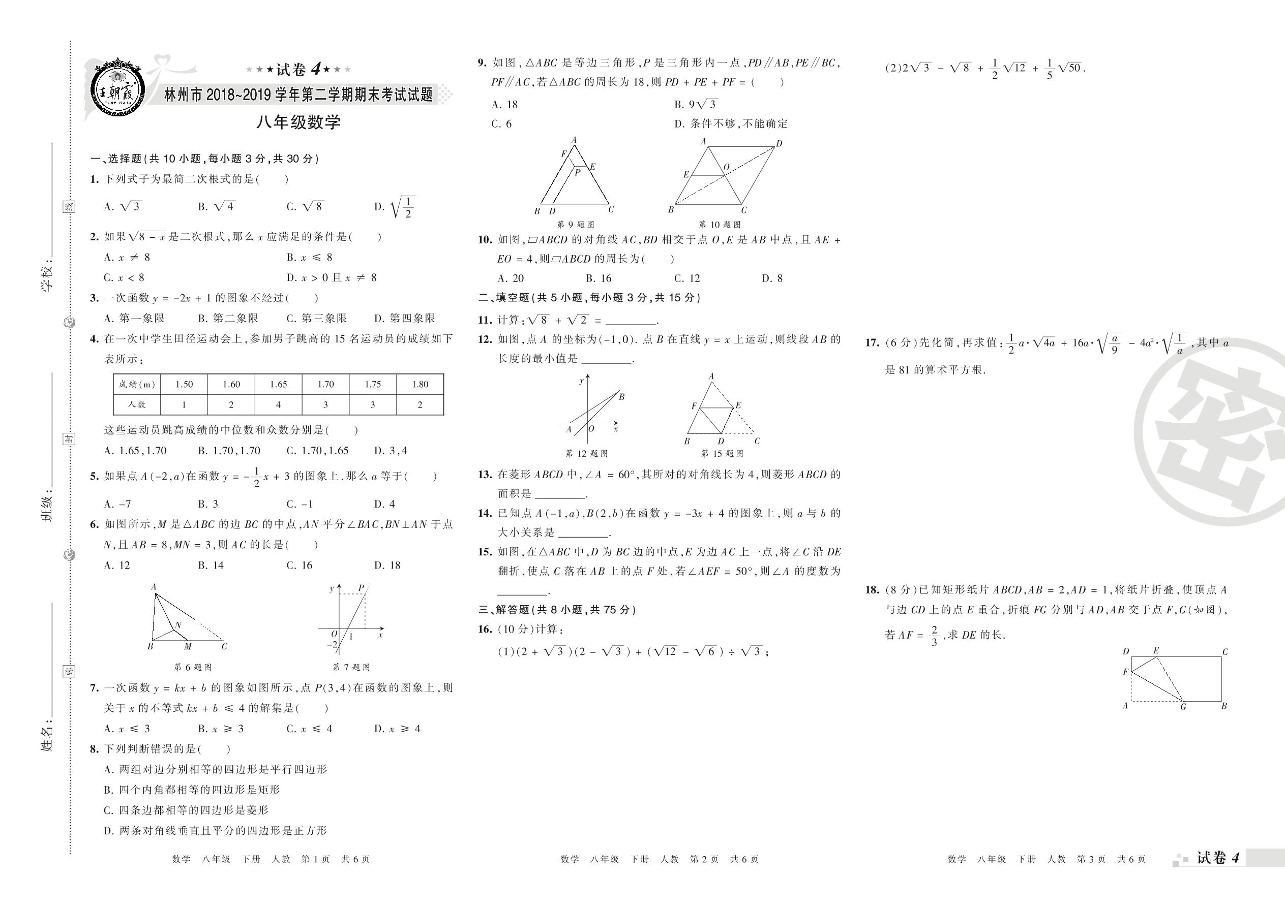 八年级数学人教版下册期末卷