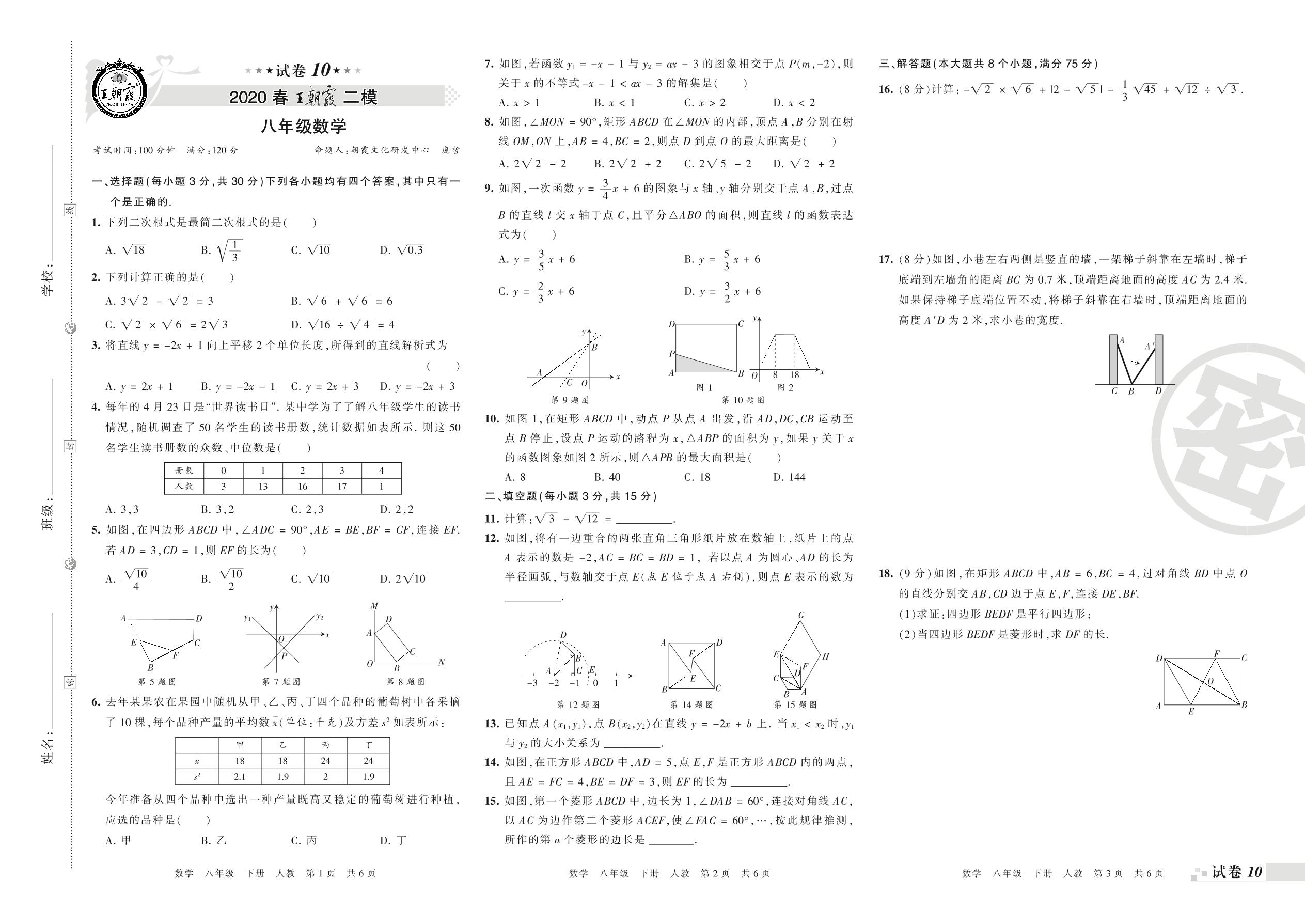 王朝霞期末模拟卷八年级下册数学(人教版)_R21080694611【10】