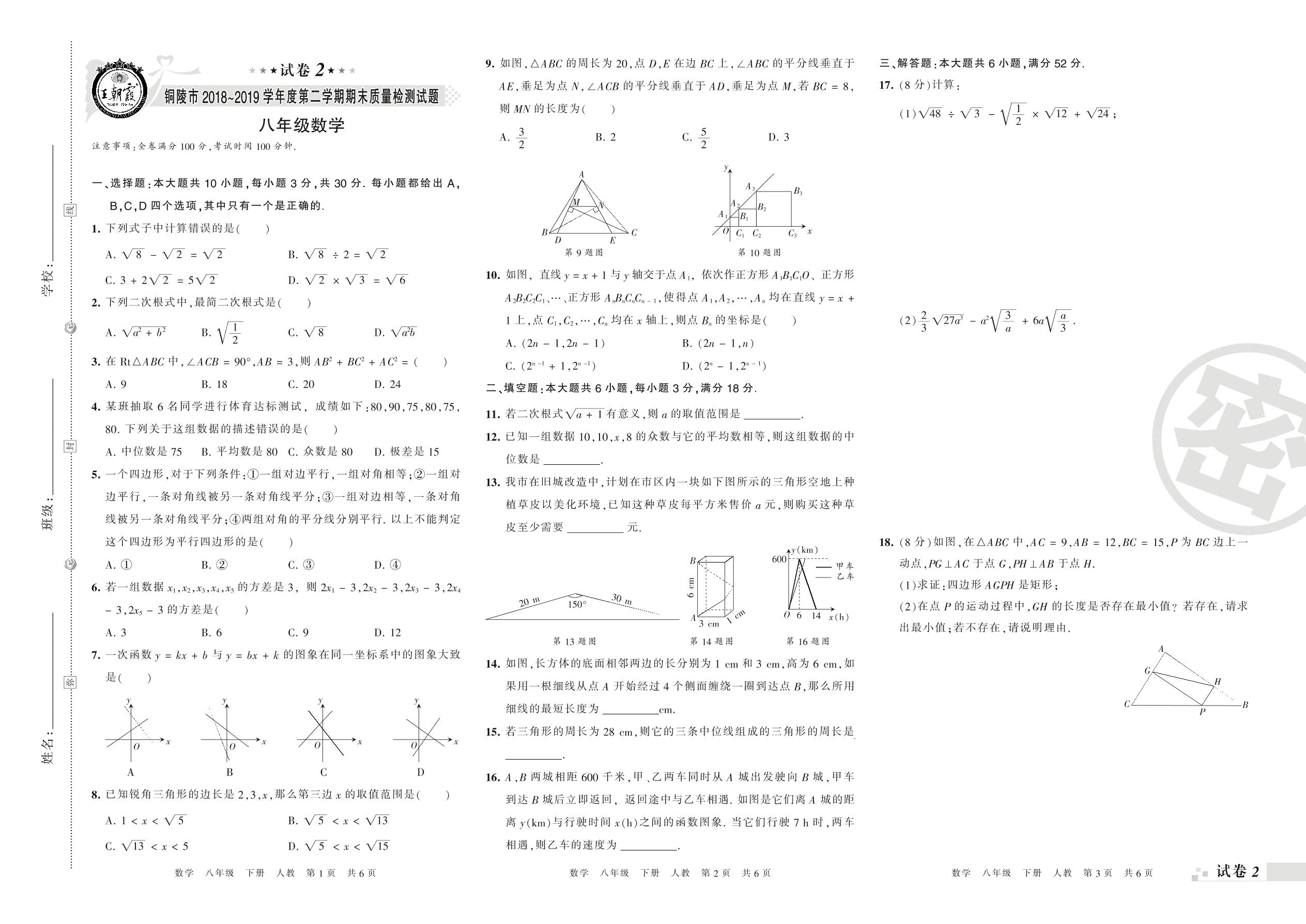2018-2019学年第二学期铜陵市八年级数学试卷(人教版)【2】