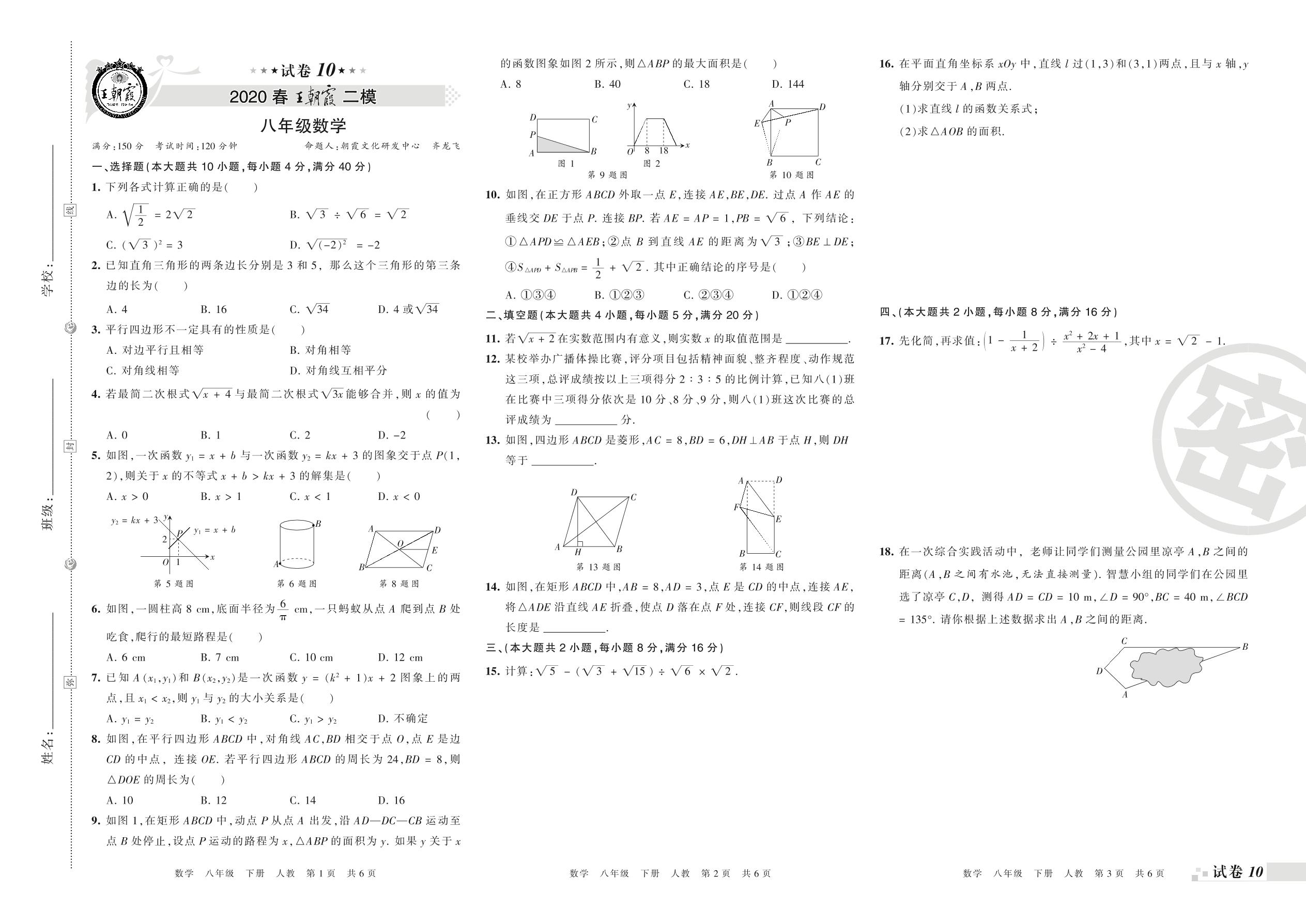 王朝霞期末模拟卷八年级下册数学(人教版)_R21080694742【10】