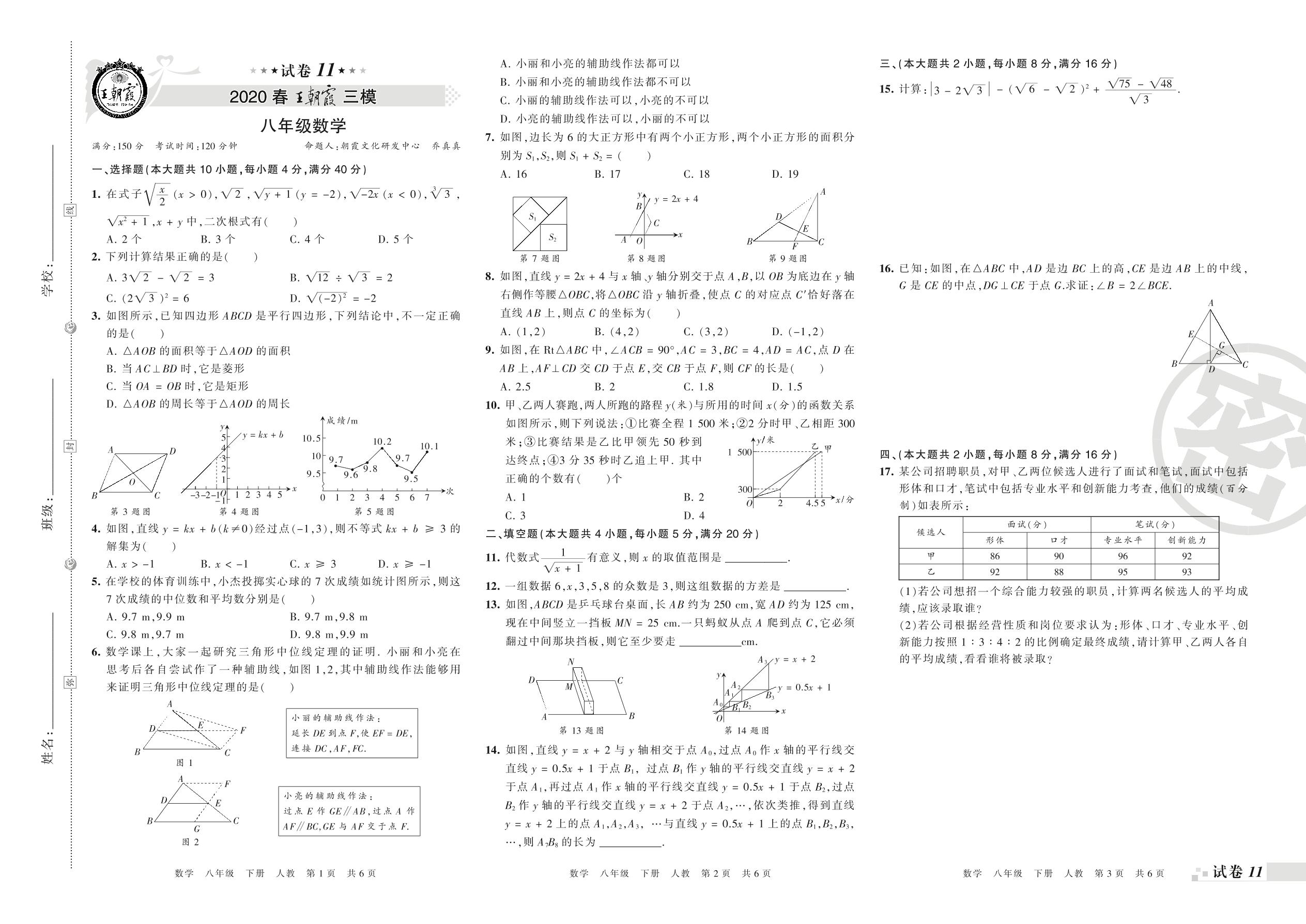 王朝霞期末模拟卷八年级下册数学(人教版)_R21080694749【11】