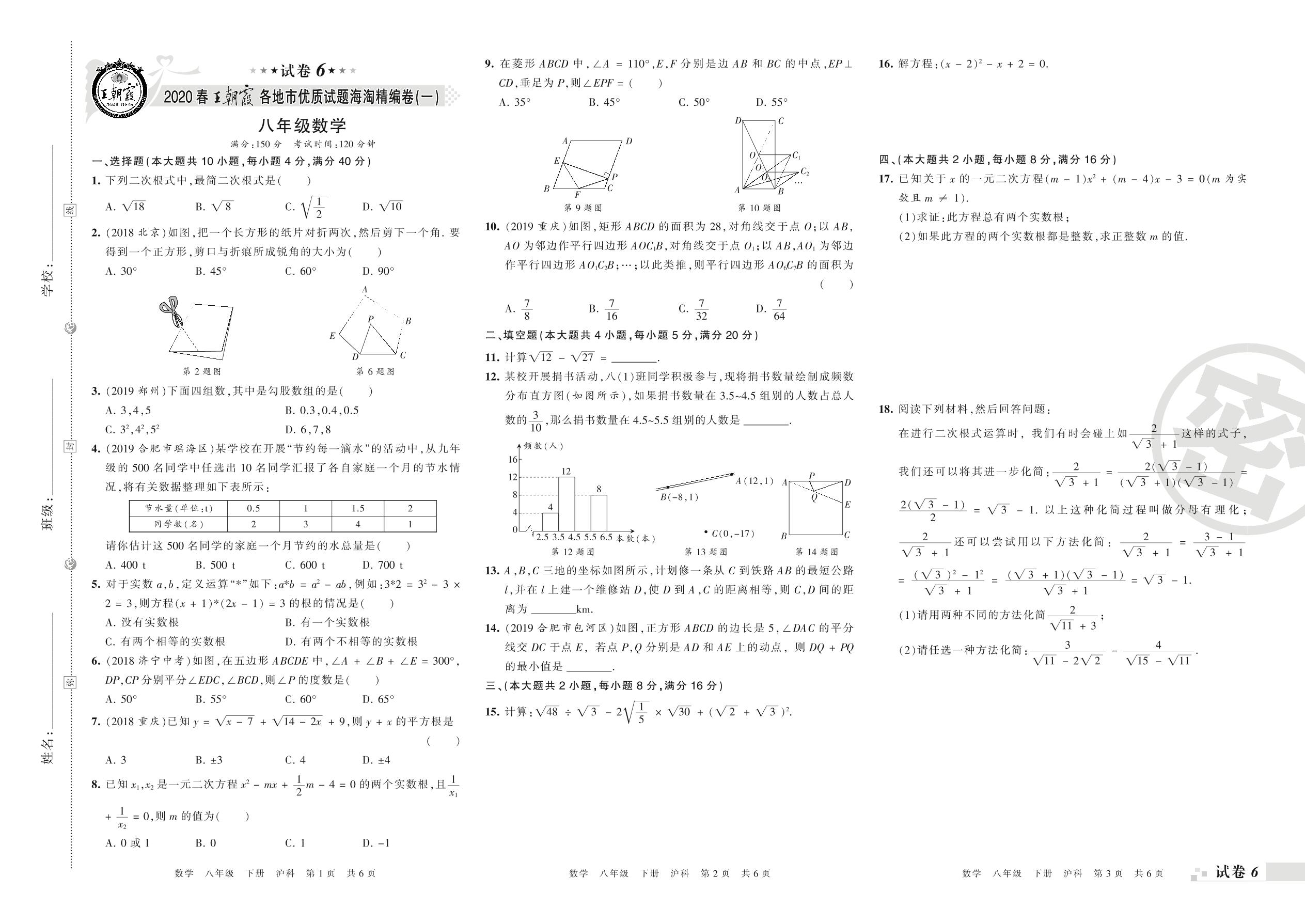 各地市优质试题海套精编卷(一)八年级下册数学(沪科版)【6】