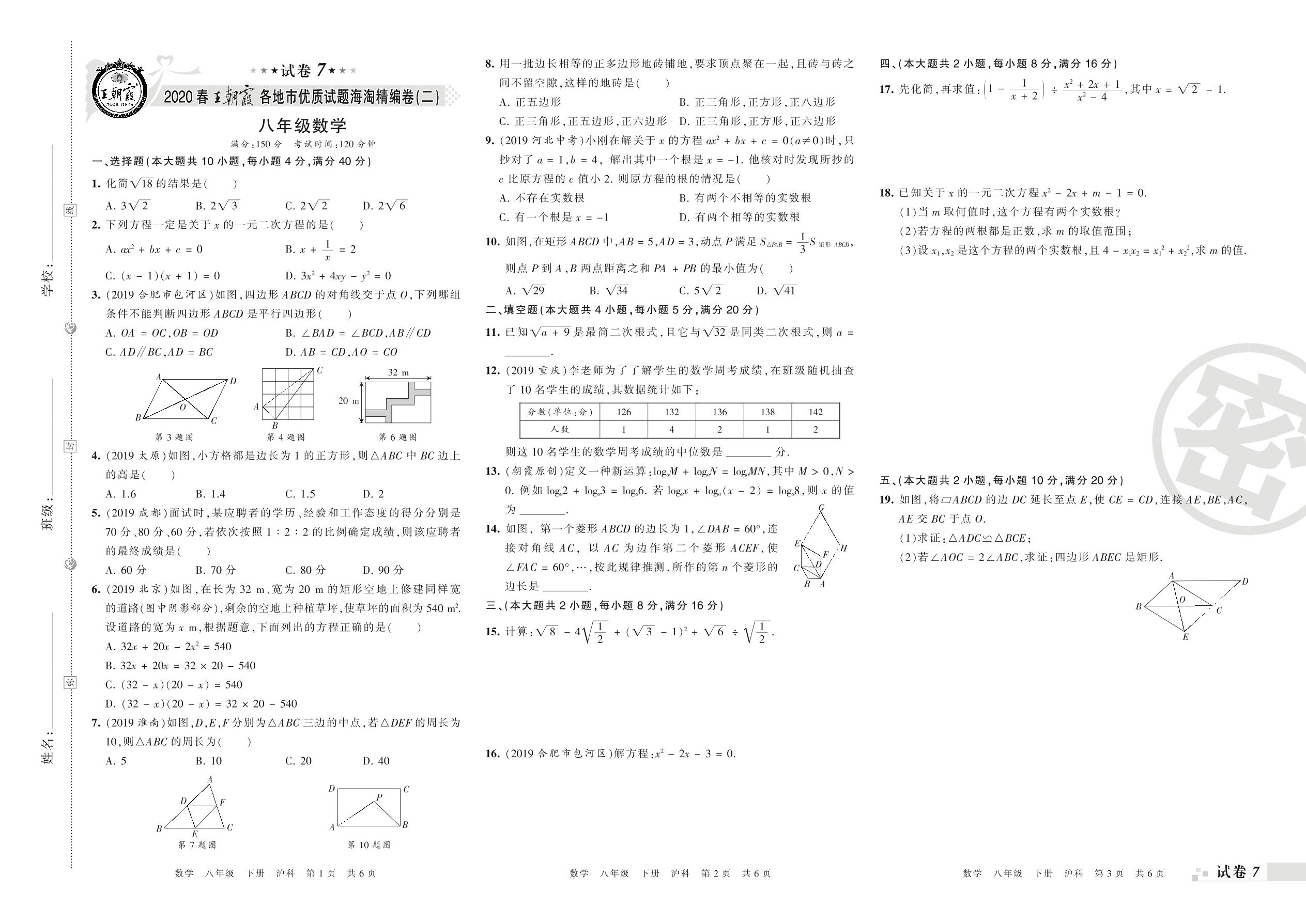 八年级数学沪科版下册期末卷