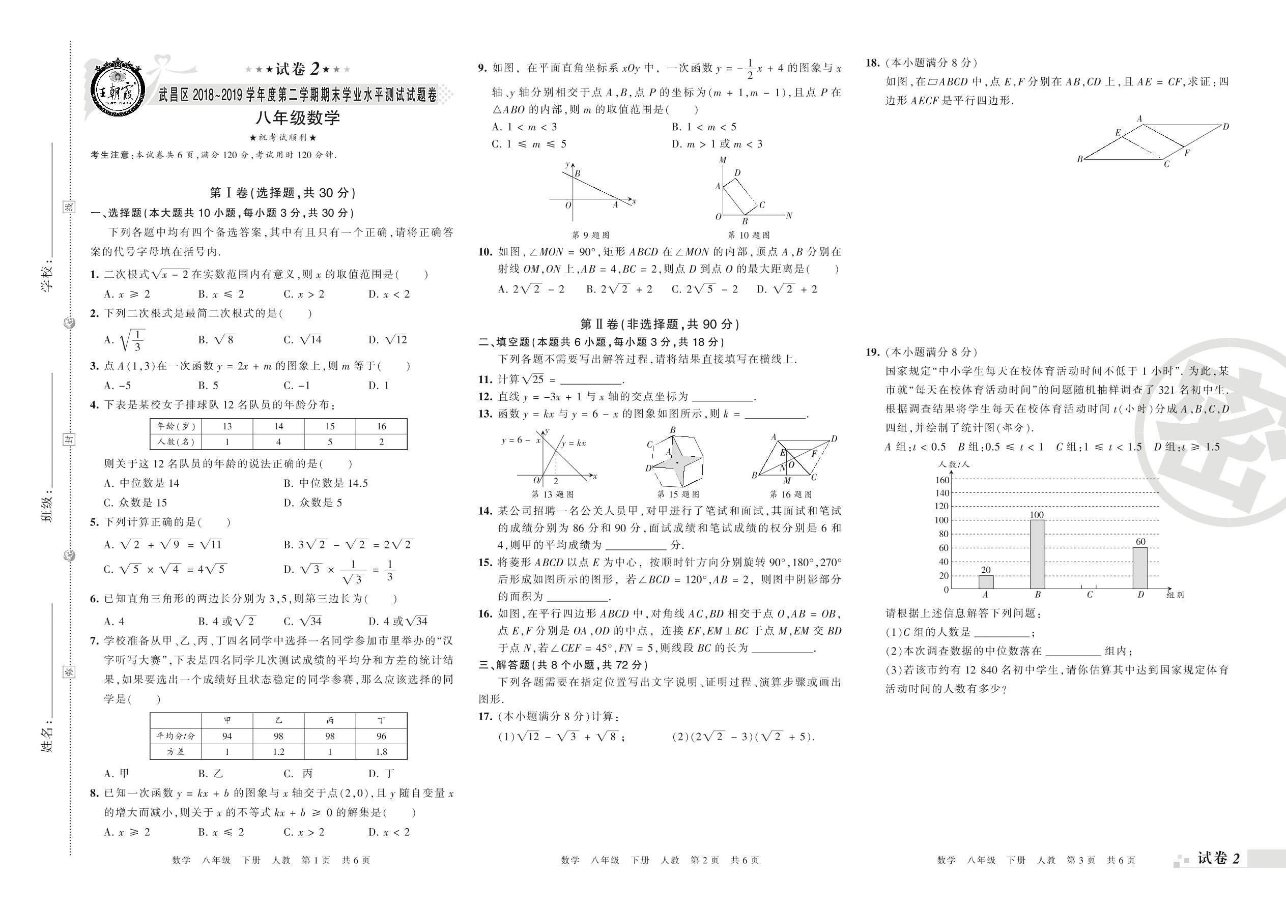 2018-2019学年第二学期武汉市武昌区八年级数学试卷(人教版)【2】