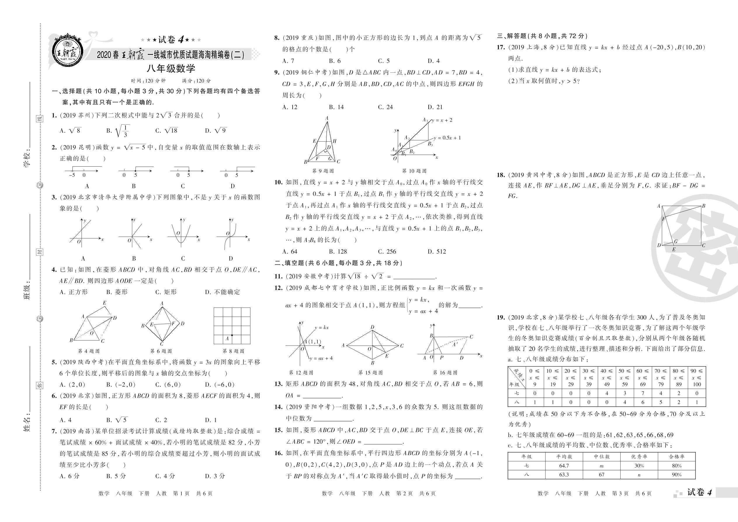一线城市优质试题海淘精编卷(二)八年级下册数学(人教版)_R21080695032【4】