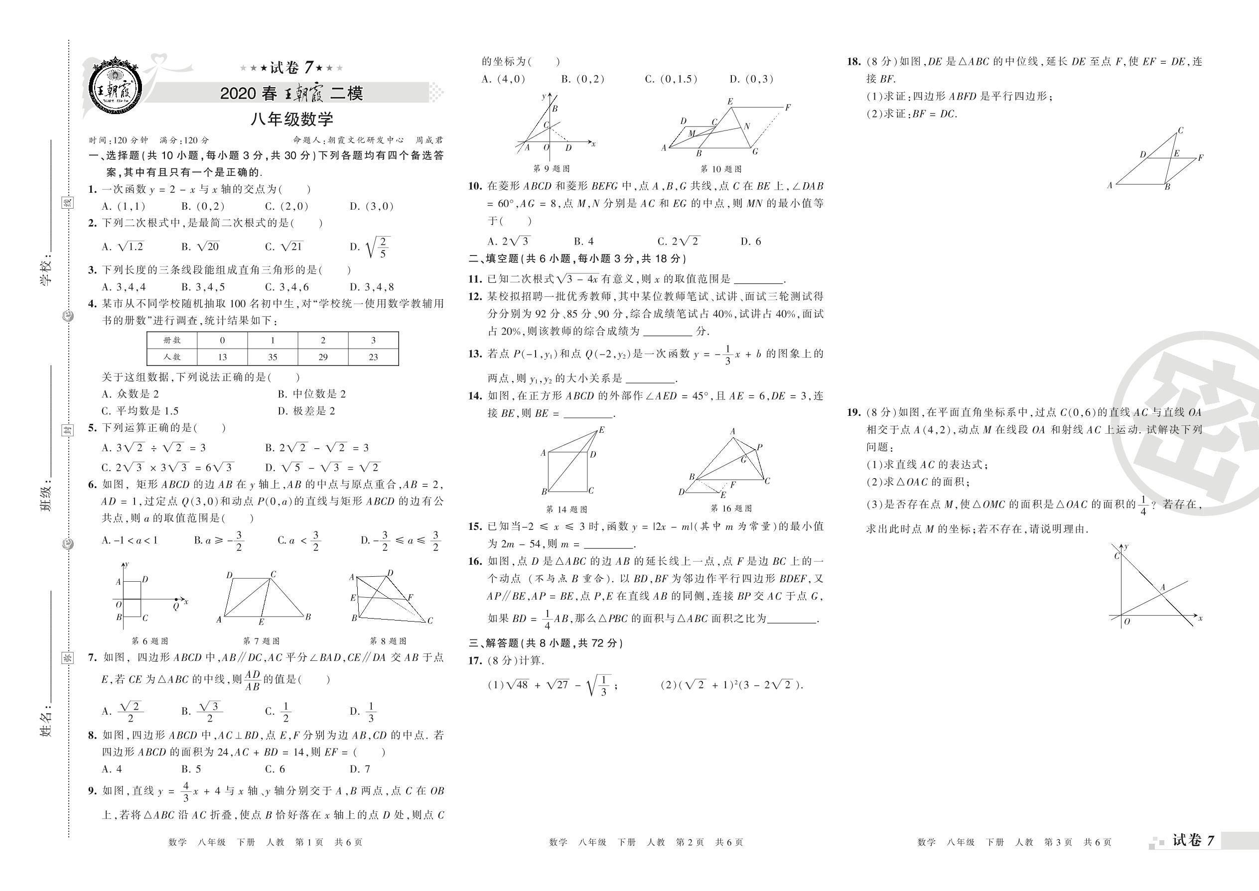 王朝霞期末模拟卷八年级下册数学(人教版)_R21080695107【7】