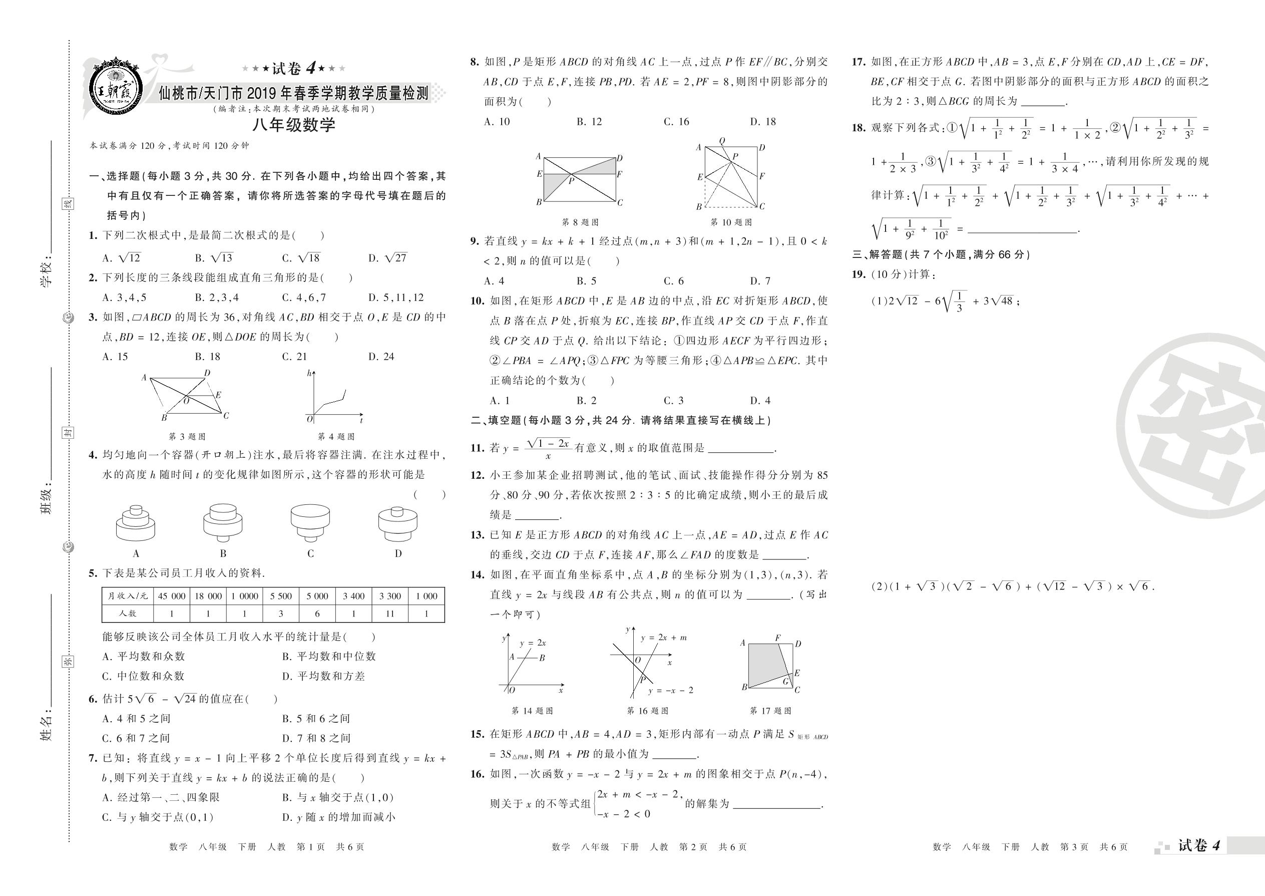 2018-2019学年第二学期仙桃市、天门市八年级数学试卷(人教版)【4】