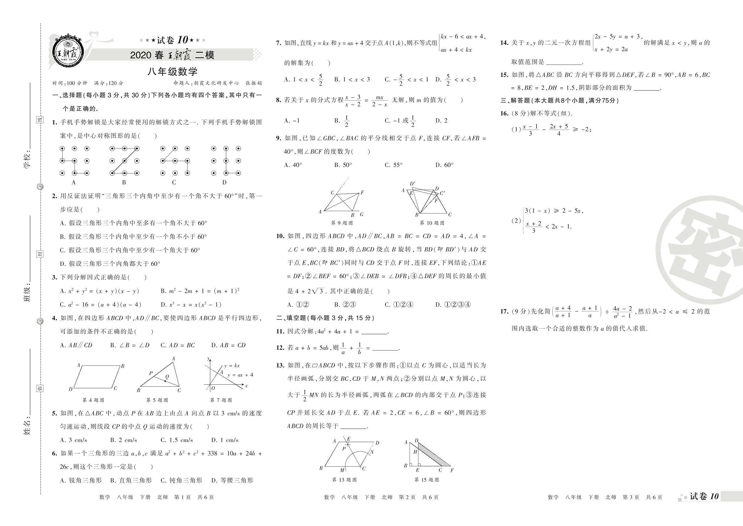 王朝霞期末模拟卷八年级下册数学(北师版)_R21080695435【10】