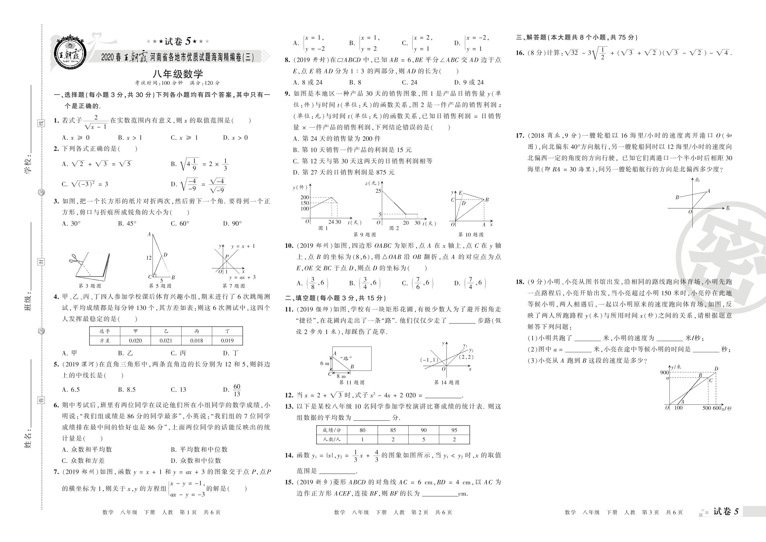 河南省各地市优质试题海套精编卷(三)八年级下册数学(人教版)_R21080695653【5】