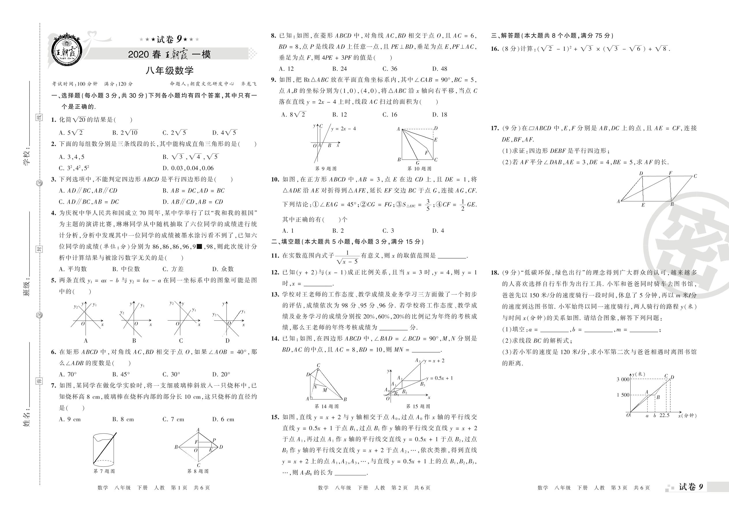 王朝霞期末模拟卷八年级下册数学(人教版)_R21080695824【9】