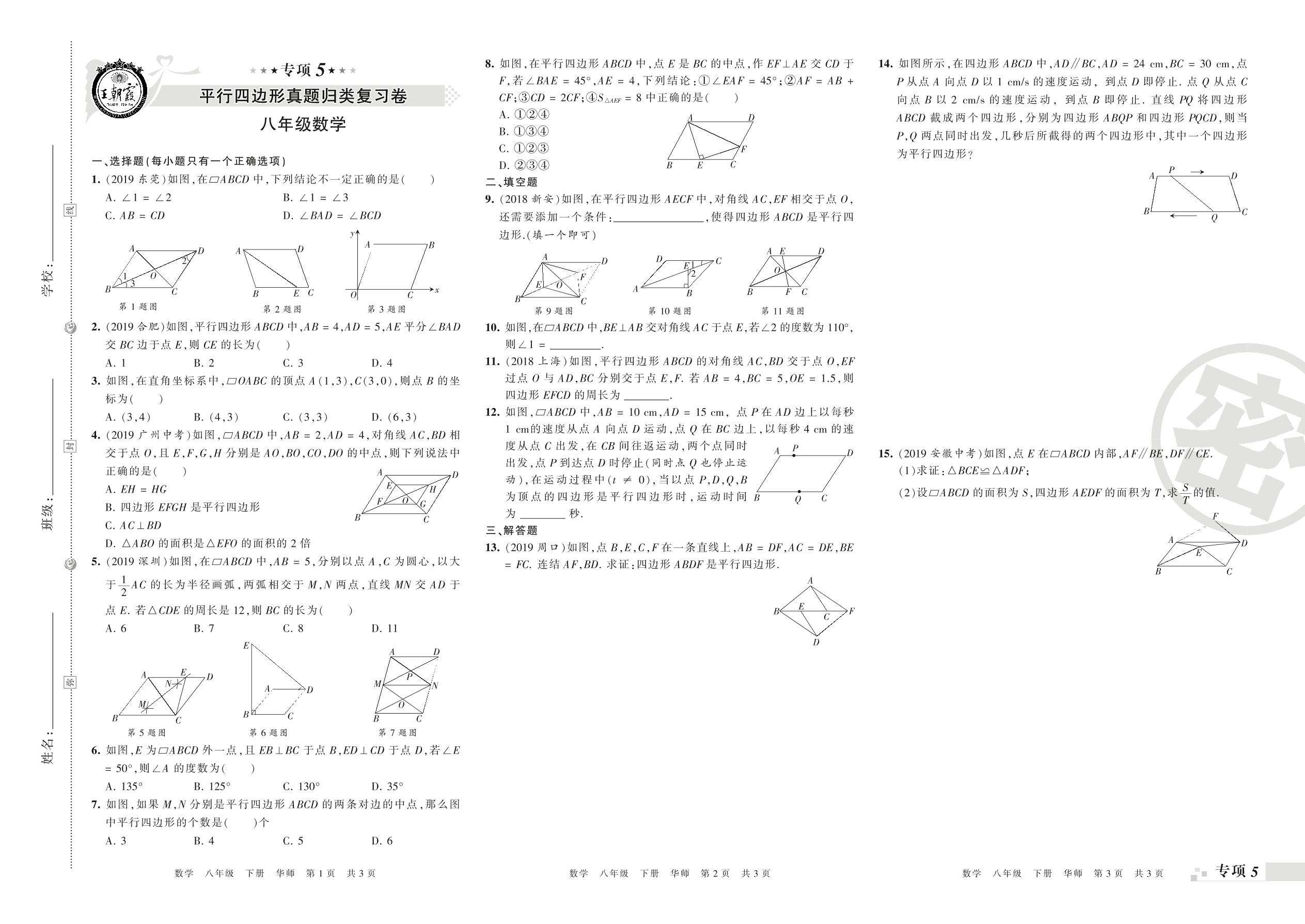 王朝霞期末专项卷——平行四边形、特殊的平行四边形(一)真题归类复习卷八年级下册数学(华师版)_R21080695946【0】