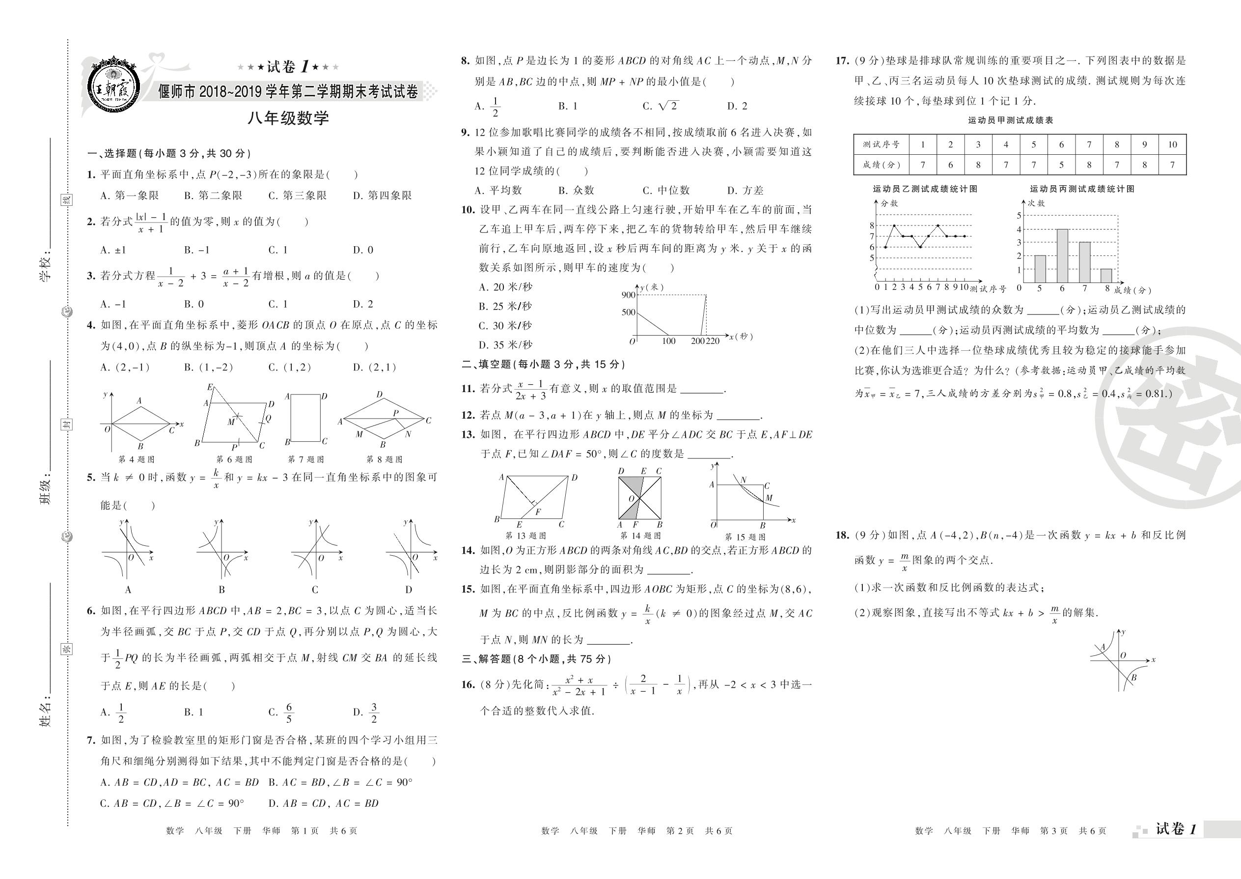2018-2019学年第二学期偃师市八年级数学试卷(华师版)【1】