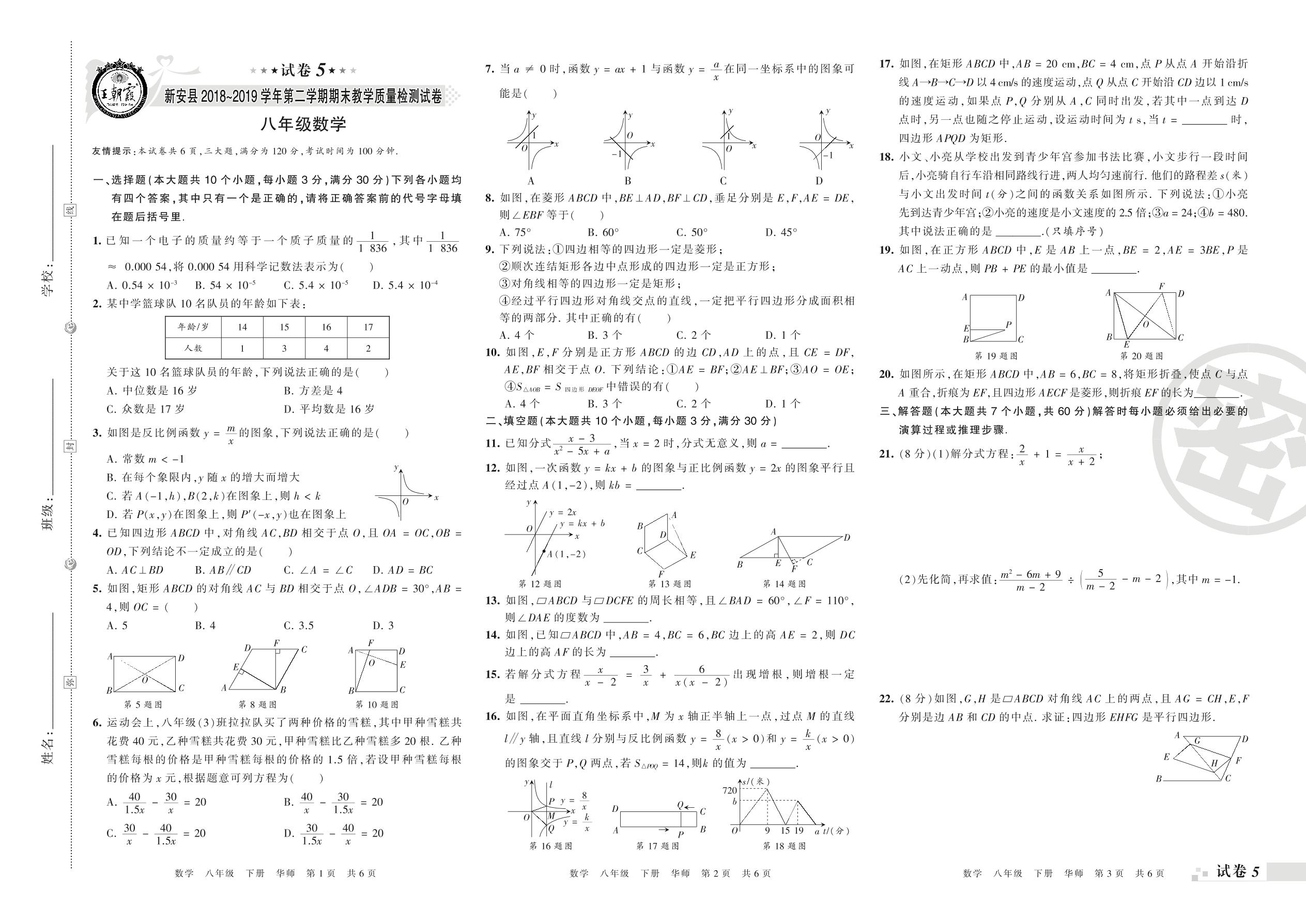 2018-2019学年第二学期洛阳市新安县八年级数学试卷(华师版)【5】