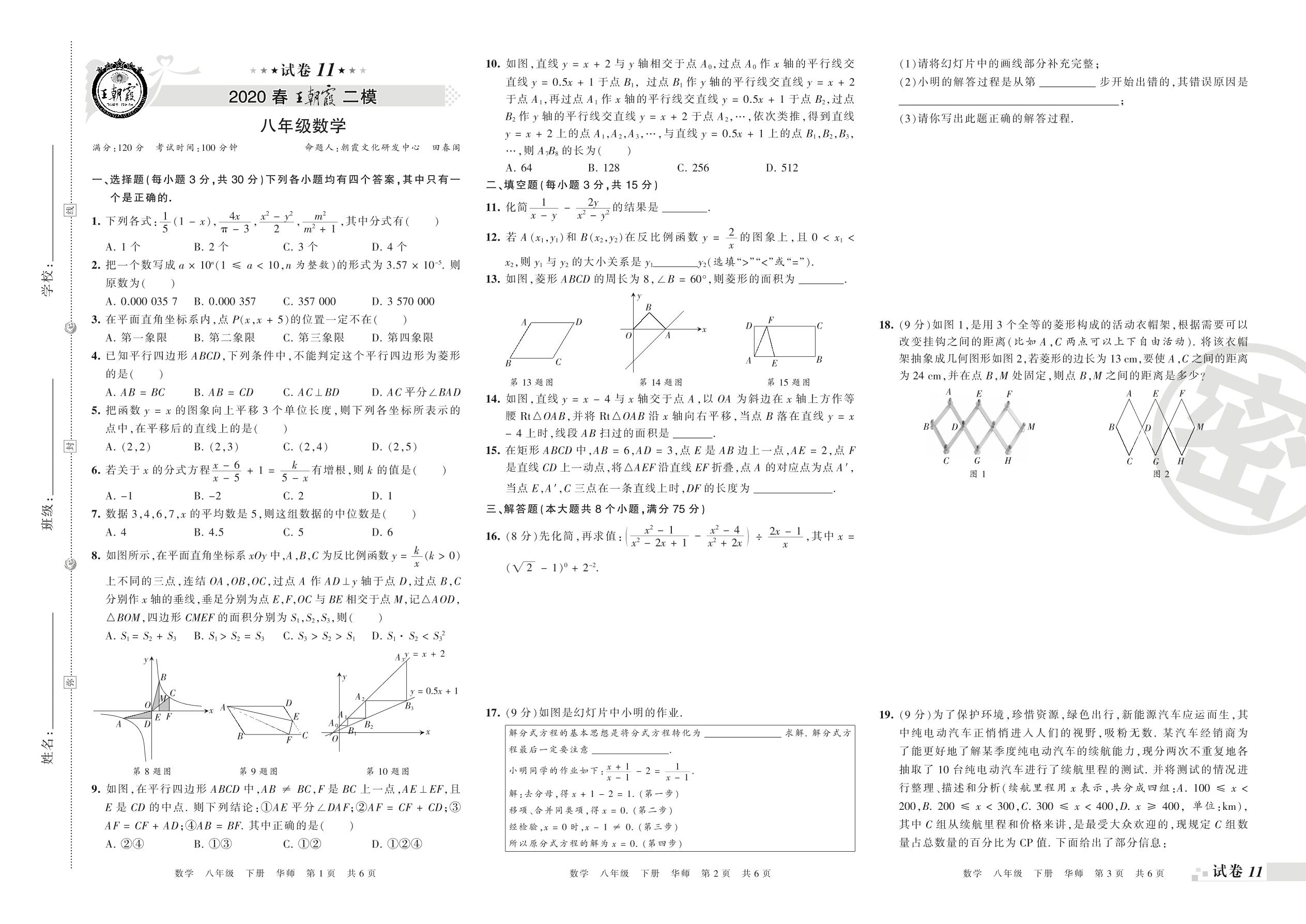 王朝霞期末模拟卷八年级下册数学(华师版)_R210806100211【11】