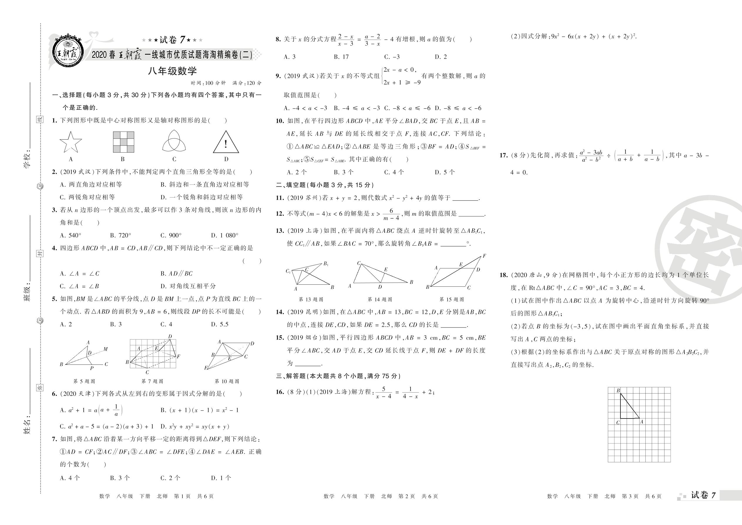 一线城市优质试题海淘精编卷(二)八年级下册数学(北师版)_R210806100316【7】