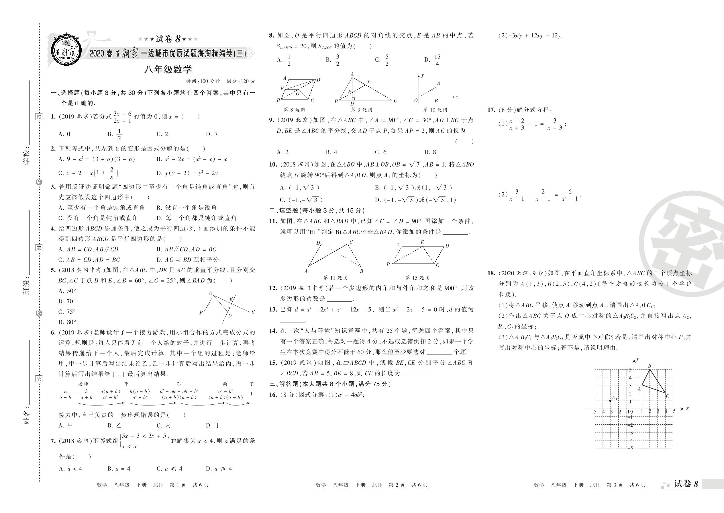一线城市优质试题海淘精编卷(三)八年级下册数学(北师版)_R210806100326【8】
