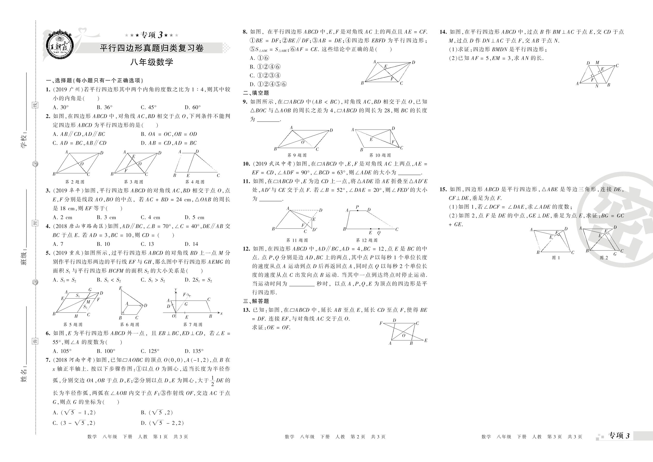 王朝霞期末专项卷——平行四边形、特殊的平行四边形(一)真题归类复习卷八年级下册数学(人教版)_R210806100400【0】