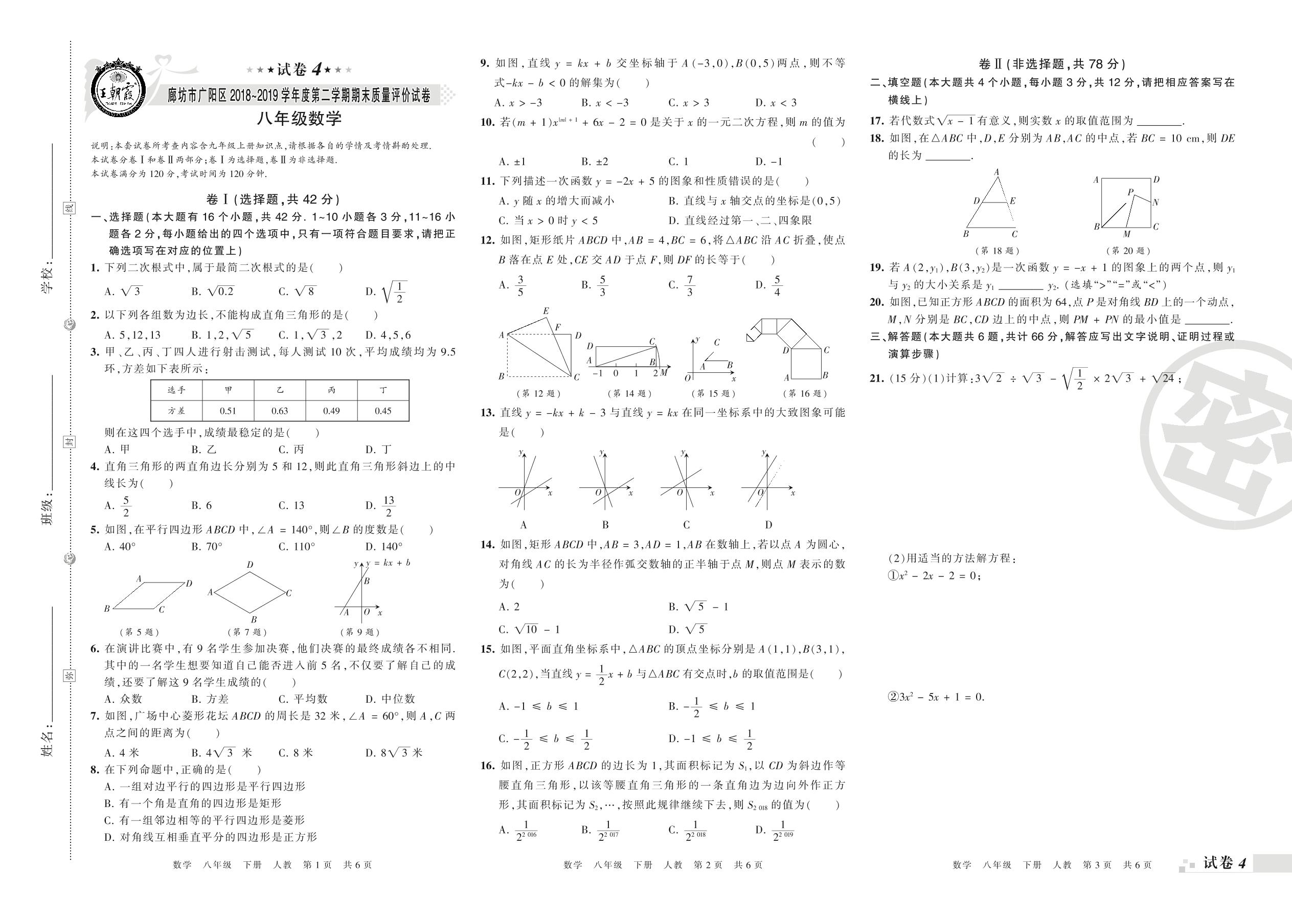 2018-2019学年第二学期廊坊市广阳区八年级数学试卷(人教版)【4】