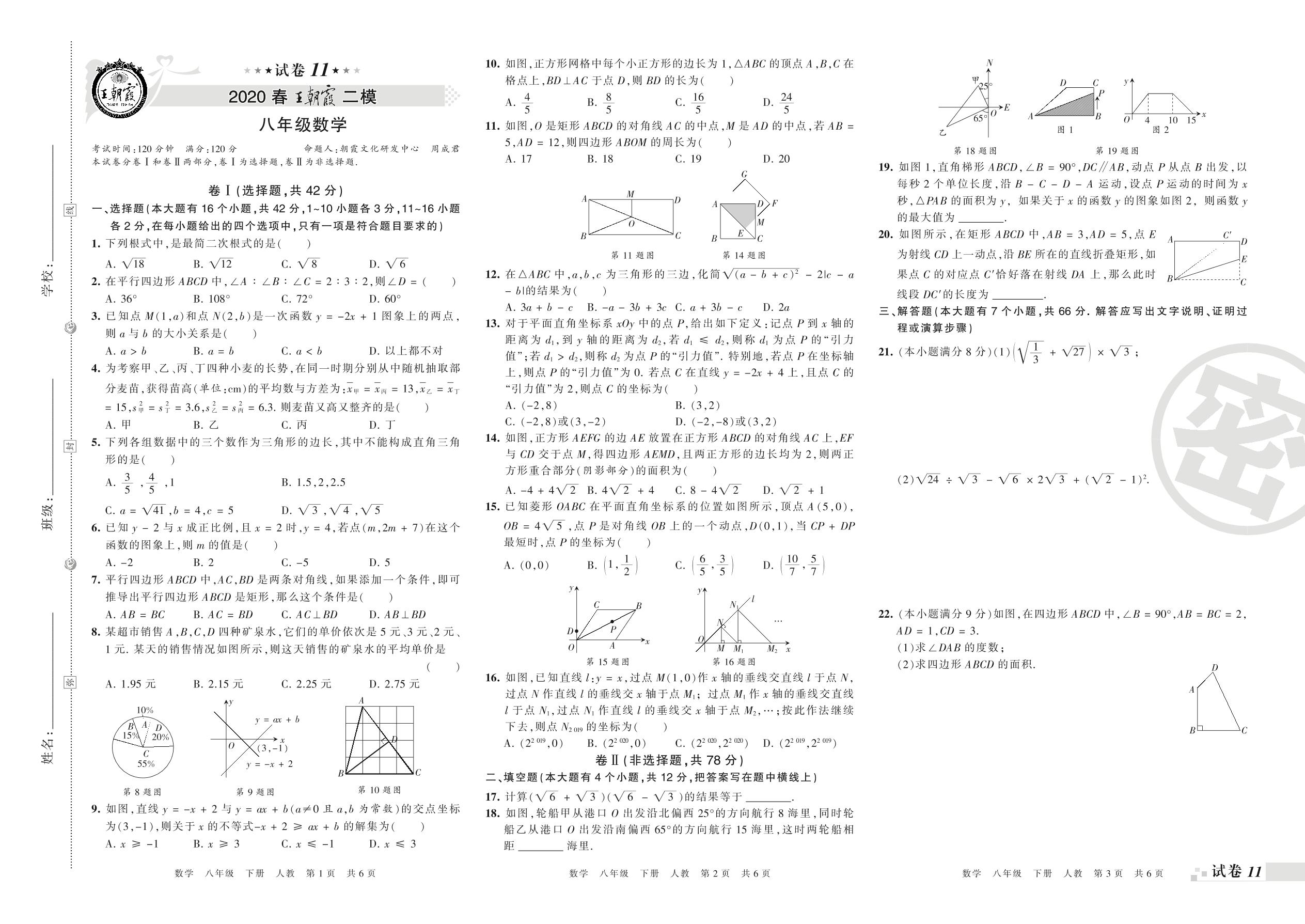 王朝霞期末模拟卷八年级下册数学(人教版)_R210806100529【11】