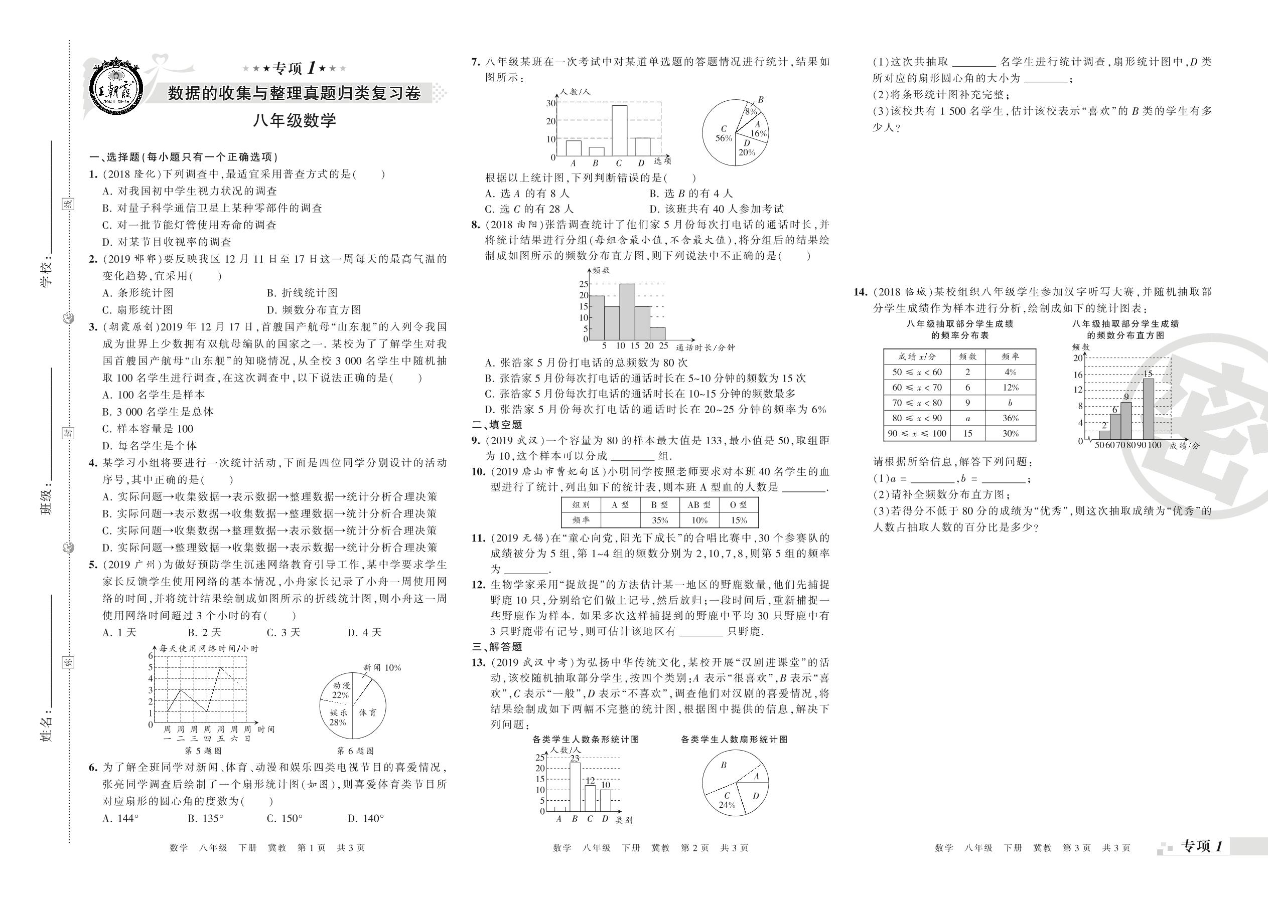 王朝霞期末专项卷——收据的收集与整理、平面直角坐标系真题归类复习卷八年级下册数学(冀教版)_R210806100537【0】