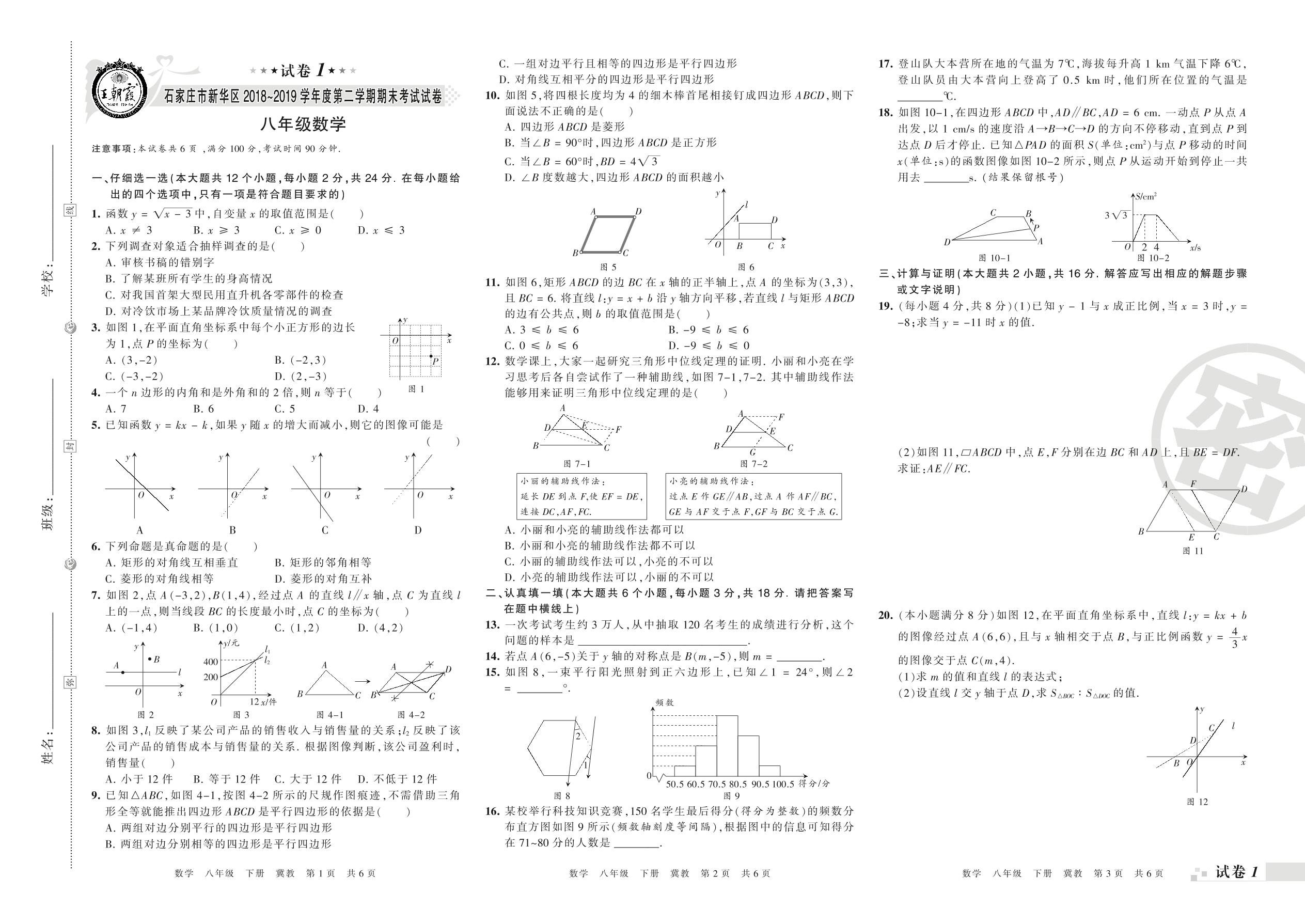 2018-2019学年第二学期石家庄市新华区八年级数学试卷(冀教版)【1】