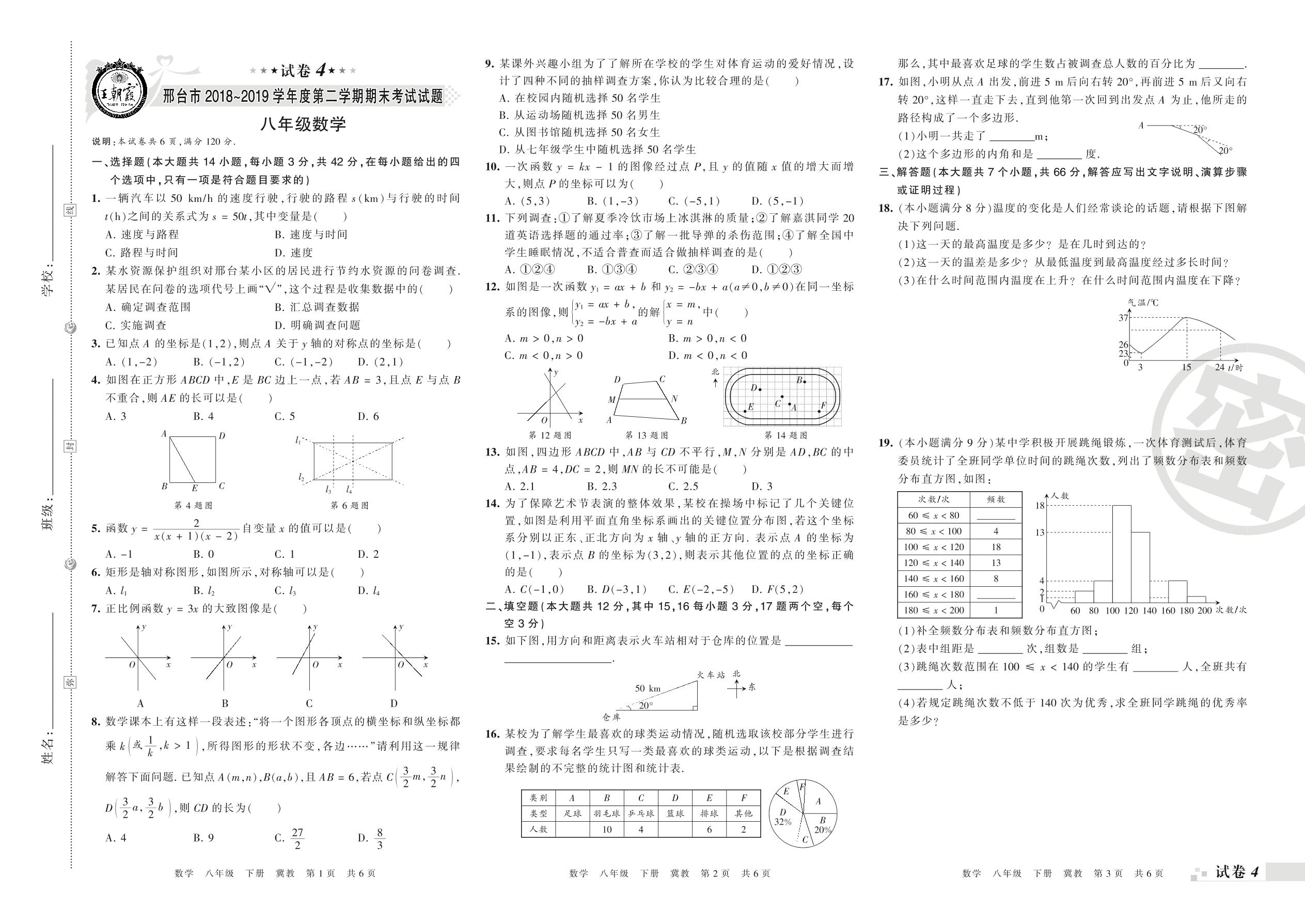 2018-2019学年第二学期邢台市八年级数学试卷(冀教版)【4】