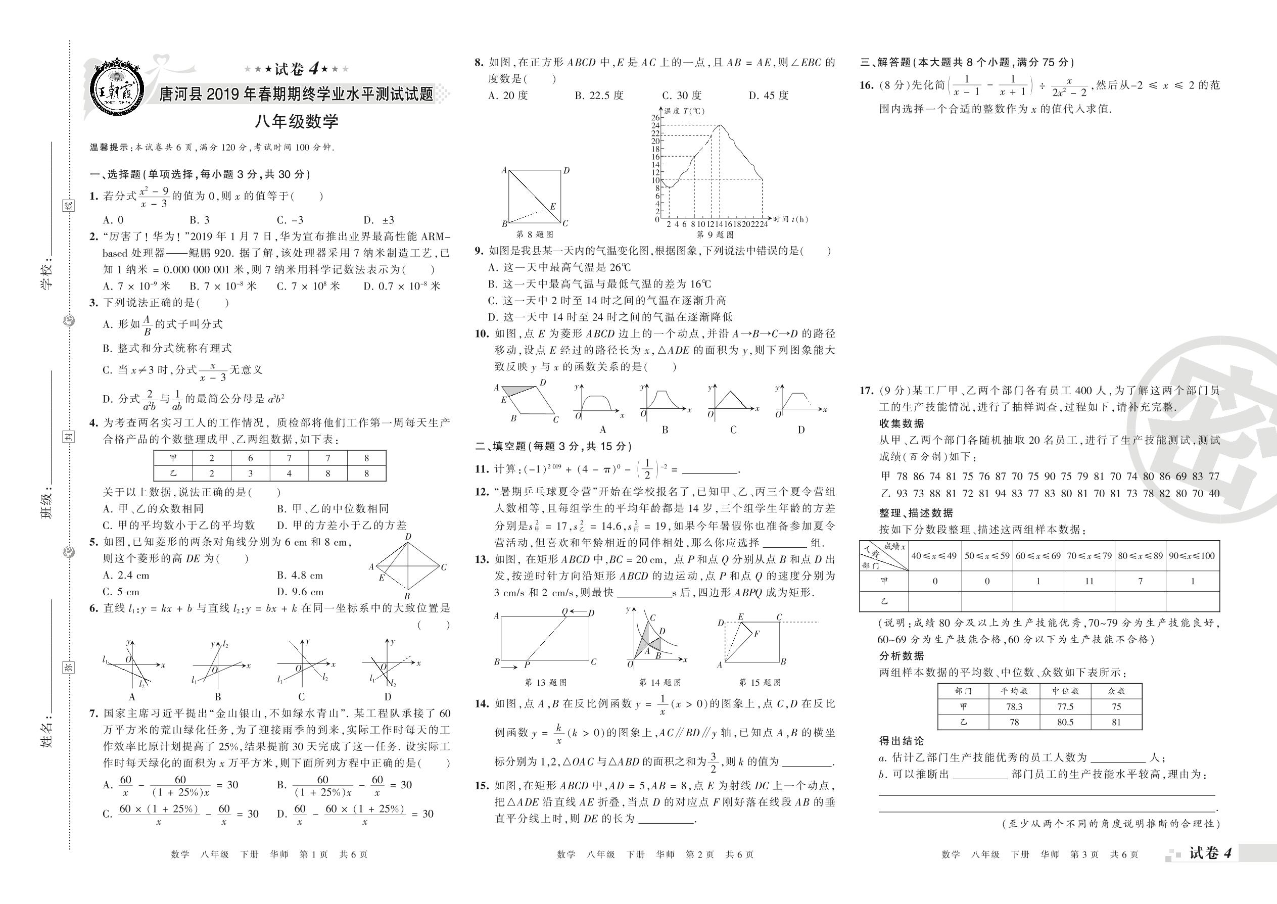 2018-2019学年第二学期南阳市唐河县八年级数学试卷(华师版)【4】