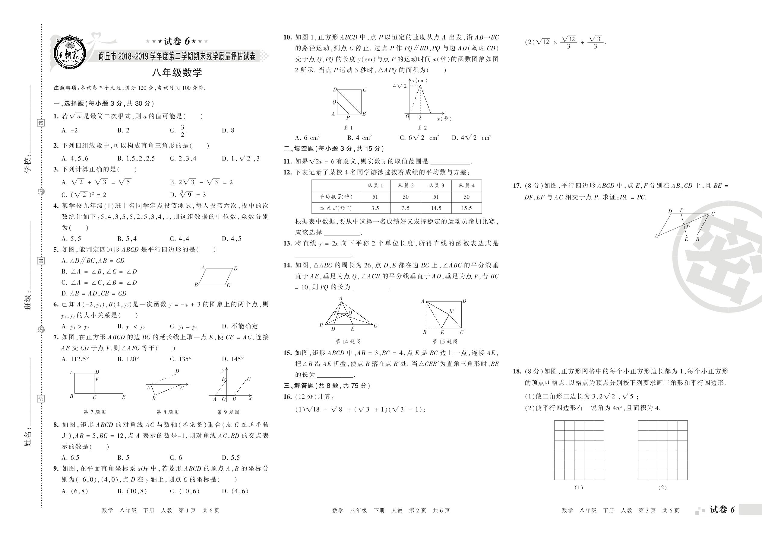2018-2019学年第二学期商丘市八年级数学试卷(人教版)【6】