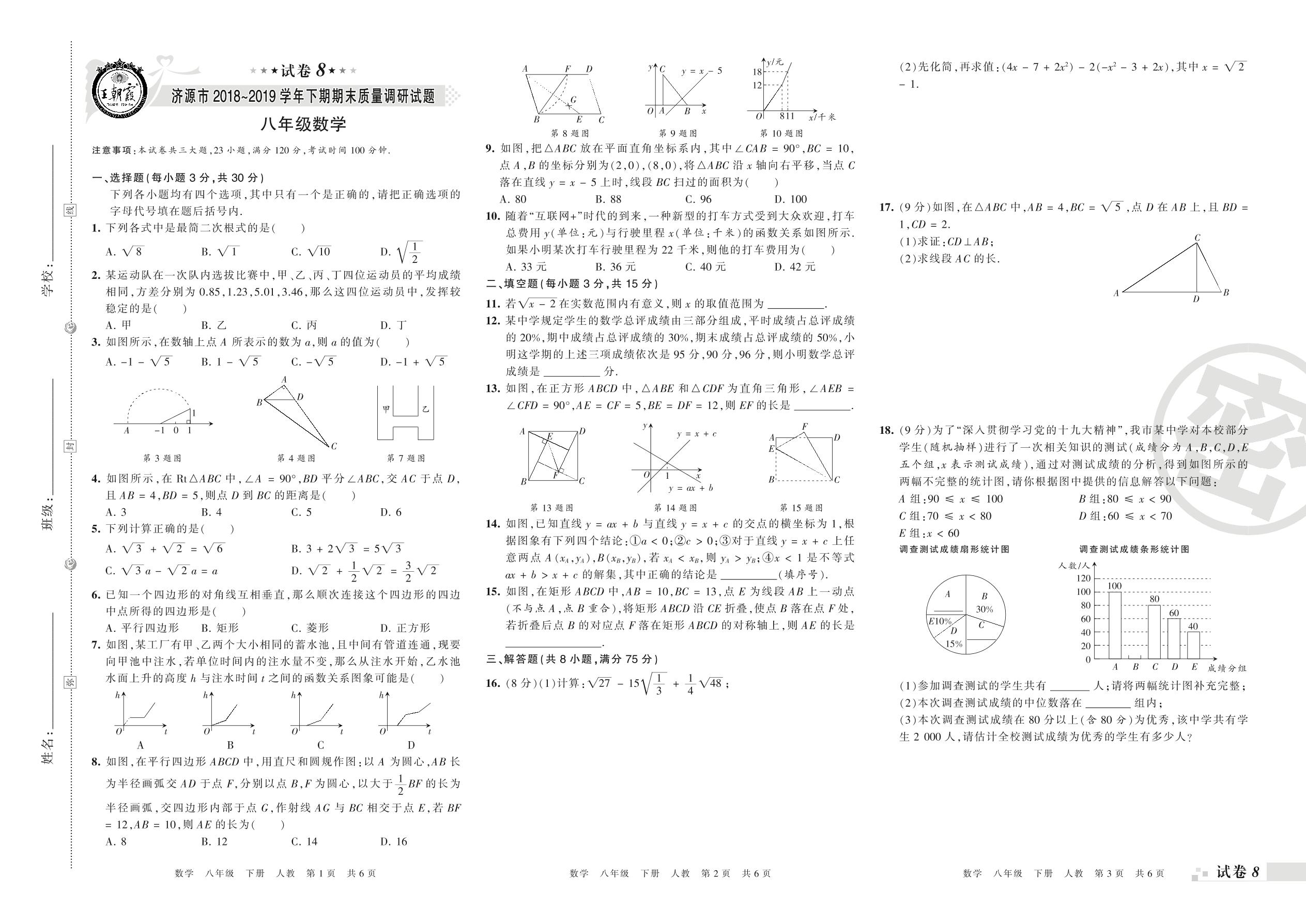 2018-2019学年第二学期济源市八年级数学试卷(人教版)【8】