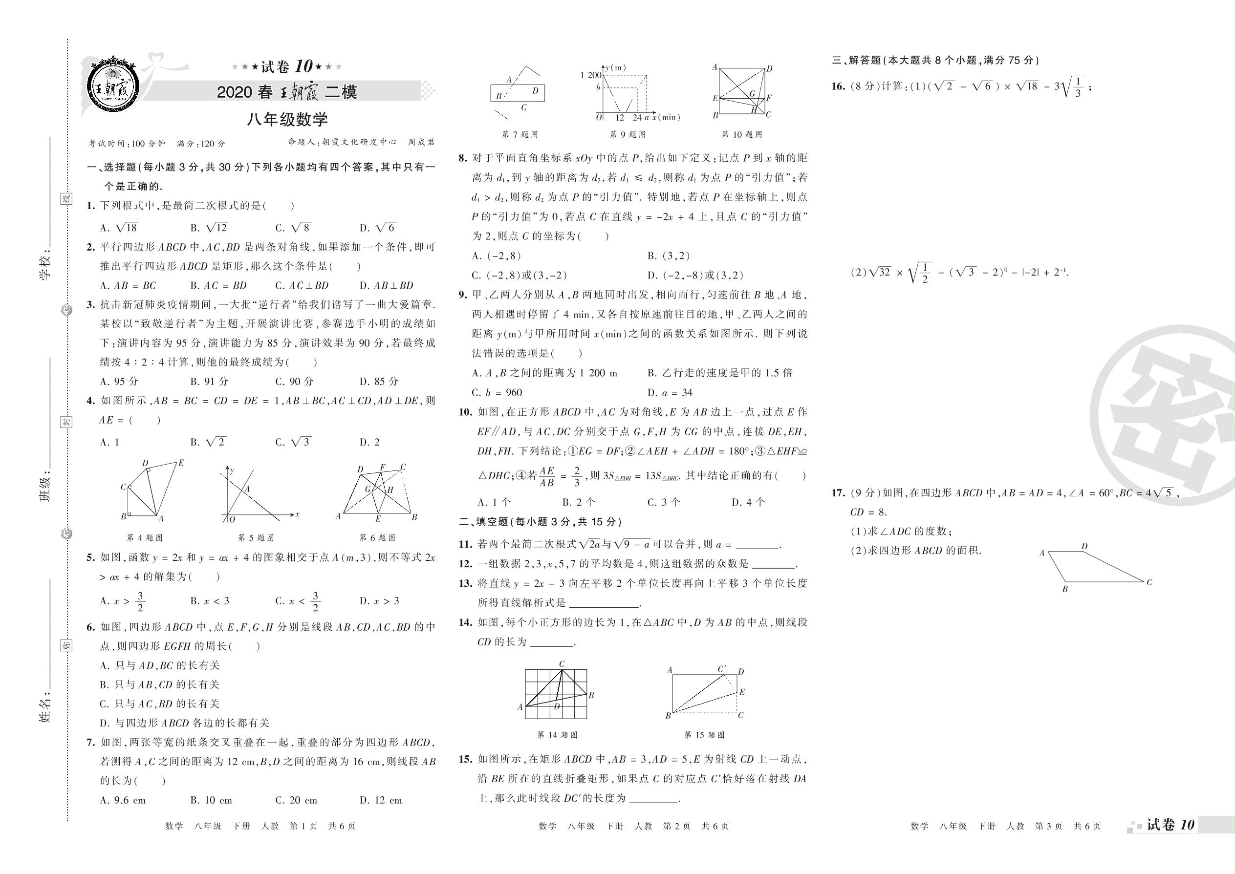 王朝霞期末模拟卷八年级下册数学(人教版)_R210806101016【10】