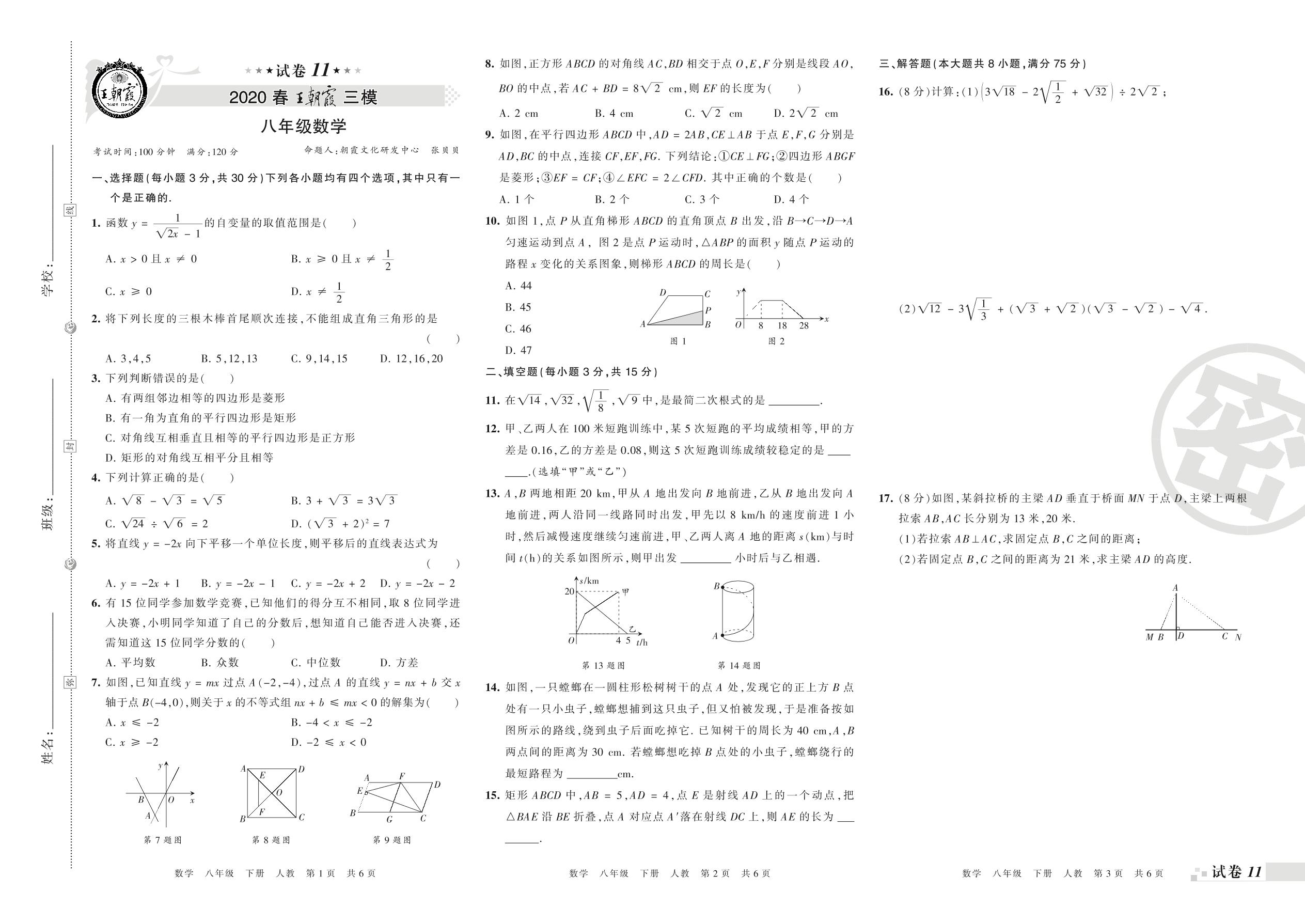 王朝霞期末模拟卷八年级下册数学(人教版)_R210806101023【11】