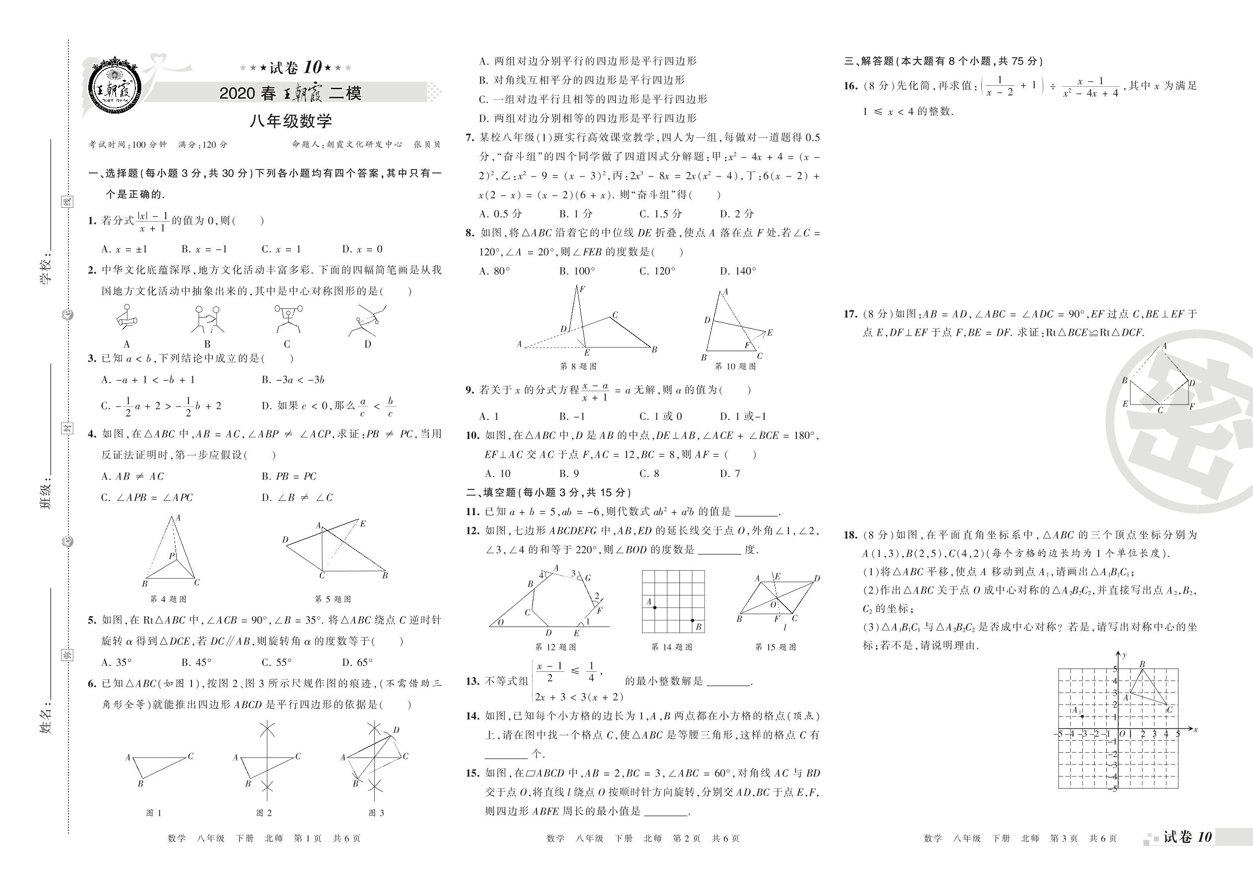 王朝霞期末模拟卷八年级下册数学(北师版)_R210806101225【10】