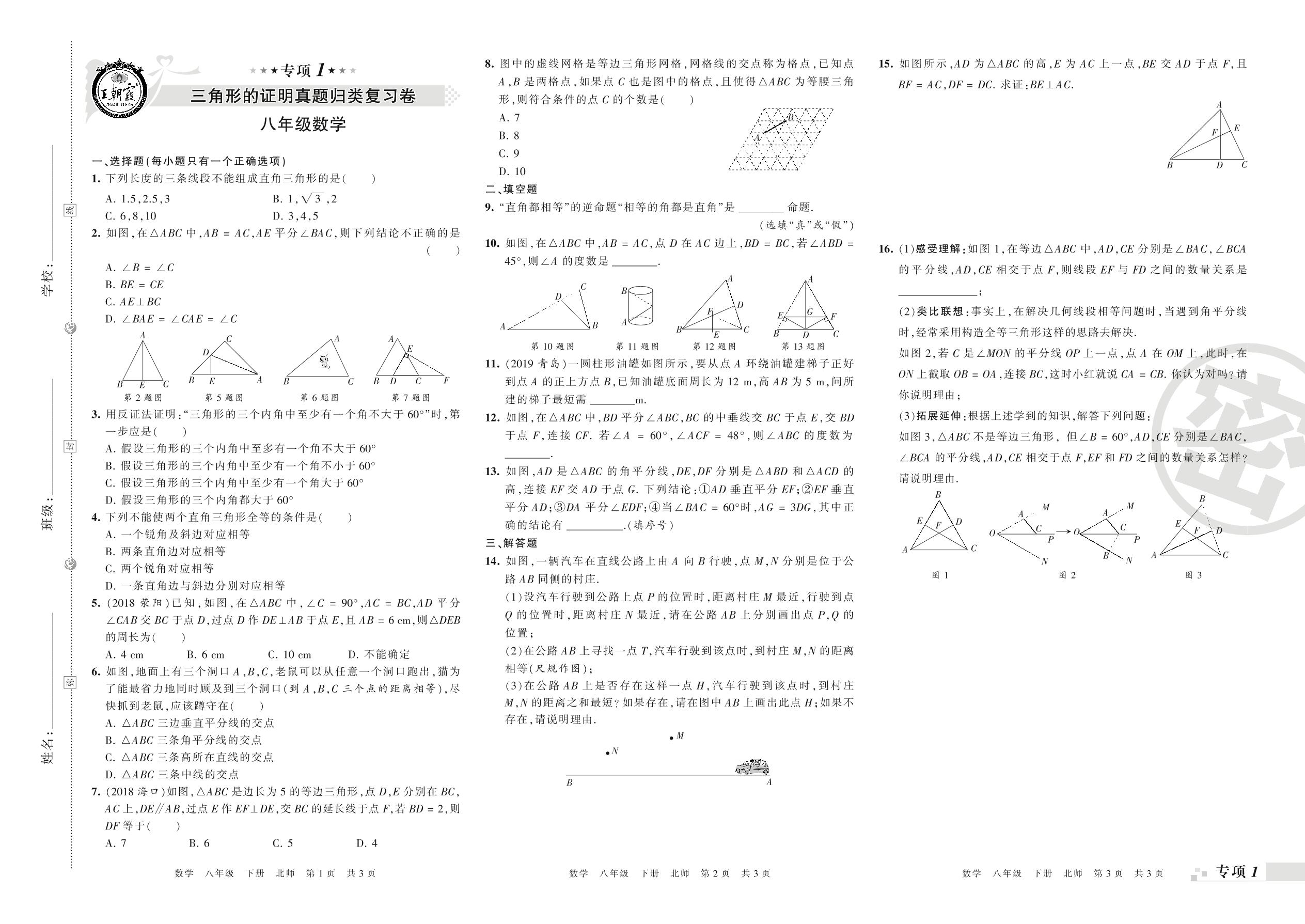 王朝霞期末专项卷——三角形的证明、一元一次不等式与一元一次不等式组的认识与解法真题归类复习卷八年级下册数学(北师版)_R210806101236【0】