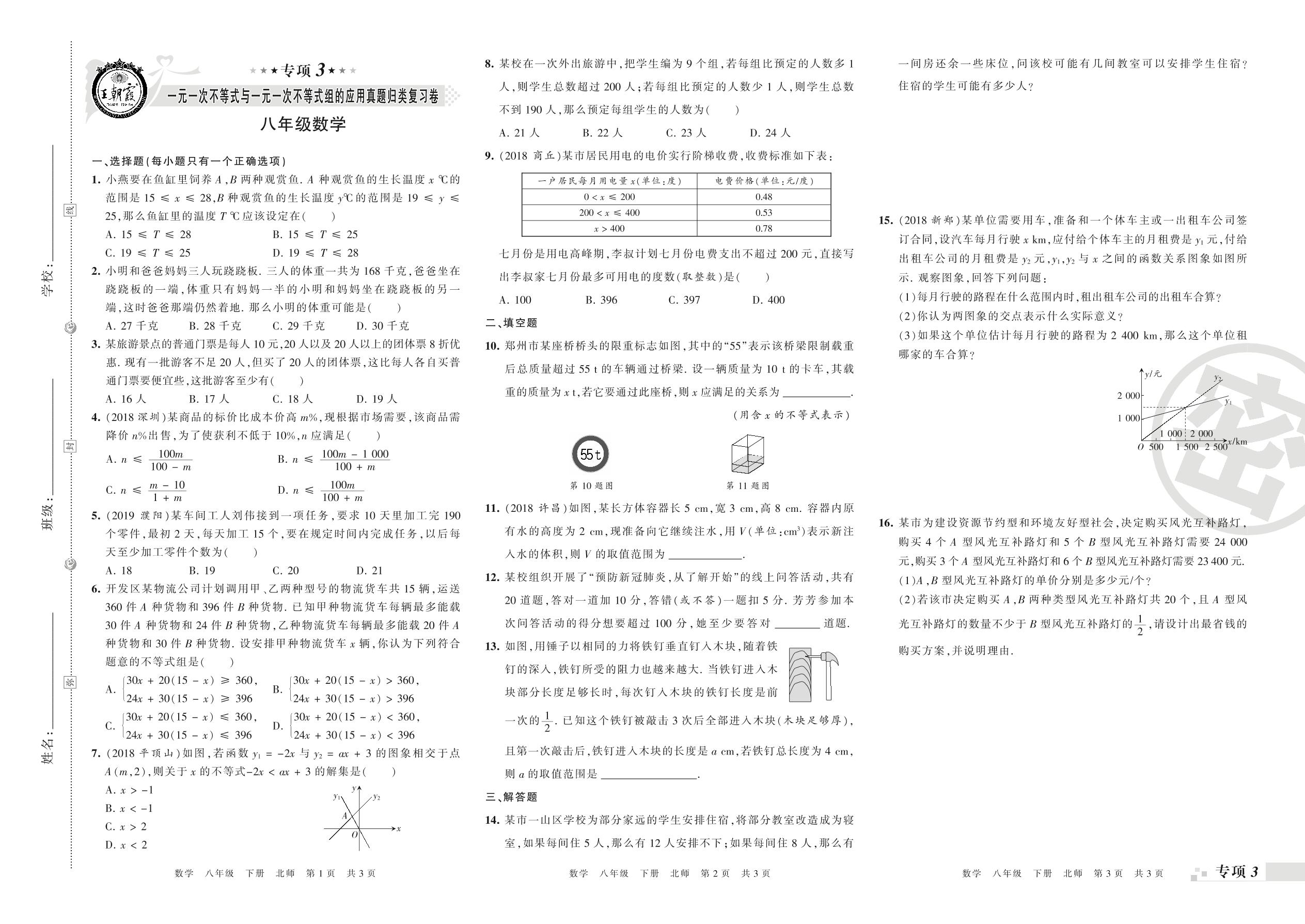 王朝霞期末专项卷——一元一次不等式与一元一次不等式组的应用、图形的平移与旋转真题归类复习卷八年级下册数学(北师版)_R210806101241【0】